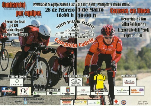 carte vta caudete_15El próximo fin de semana, sábado 28 de febrero y domingo 1 de marzo, Caudete (Albacete) acoge la celebración de la I Vuelta Villa de Caudete, organizado por el Club Ciclista de Caudete y reservada a corredores cadetes.