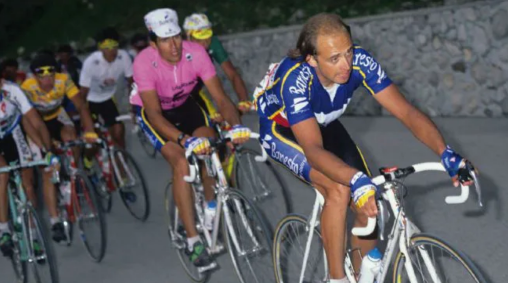 En el Giro del 94 fue cuando exclamó su famosa y misteriosa frase cuando le dedicó «a la luz» su victoria en el prólogo, vistiéndose con la maglia rosa.