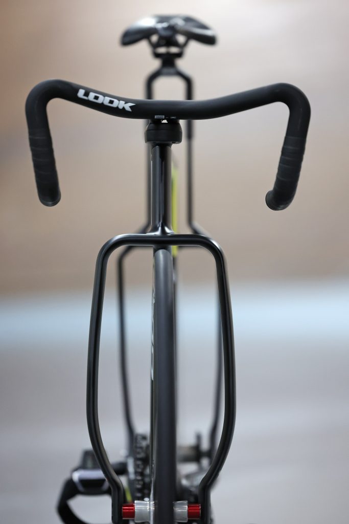 En este sentido, en el reportaje se destaca el trabajo para reducir la superficie frontal, para lo cual es muy importante bajar el pecho y posicionar la cabeza y los hombros, y todo lo que implique juntar los codos reduce esa superficie. Por ejemplo, el manillar de velocidad tiene un estilo retráctil, que conlleva un acercamiento de los codos cuando las manos están en el hueco del manillar. Es decir, que la ganancia aerodinámica no proviene del propio manillar, sino de la posición que induce. La ganancia de 40/50 watios respecto a la LOOK T20 aumenta a 91 watios gracias a la posición que implican los manillares de velocidad.