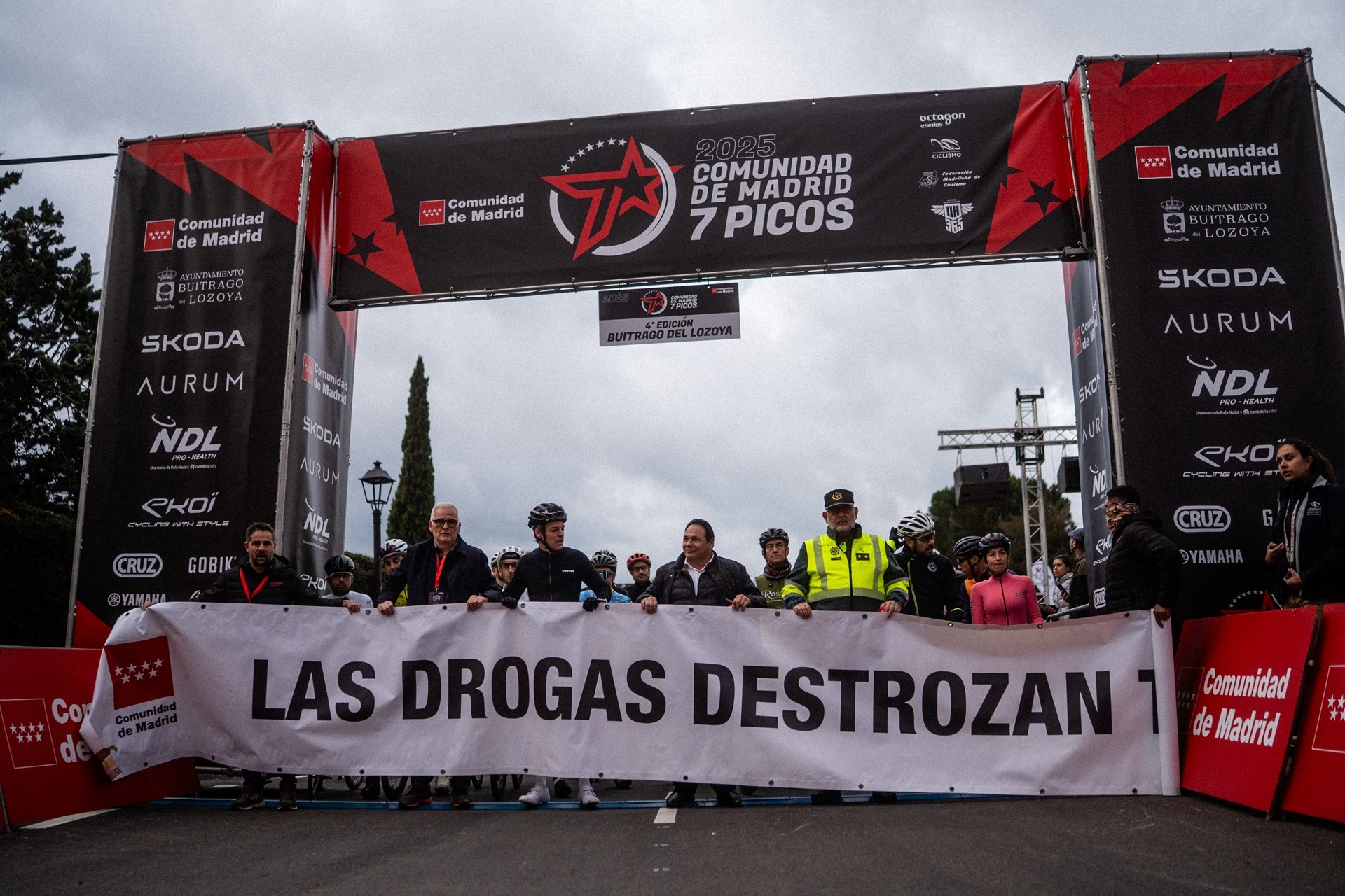 Antes de la salida, se celebró un minuto de silencio en recuerdo a Teófilo Higuero, teniente Jefe de la Guardia Civil del Destacamento de Buitrago del Lozoya y Jefe del Dispositivo de Seguridad de la marcha quien nos dejó hace pocos días en un accidente de tráfico. Además, antes del corte de cinta protocolario presenciado por Alberto Tomé, director General de Deportes de la Comunidad de Madrid; José Ignacio Zambrano, concejal de Deportes del Ayuntamiento de Buitrago del Lozoya y Xavier Bartrolí, presidente de Octagon Esedos, empresa organizadora, se ha levantado una pancarta en apoyo a la nueva campaña del Plan Regional de la Comunidad de Madrid contra las Drogas con el lema «LasDrogasDestrozanTuVida«.