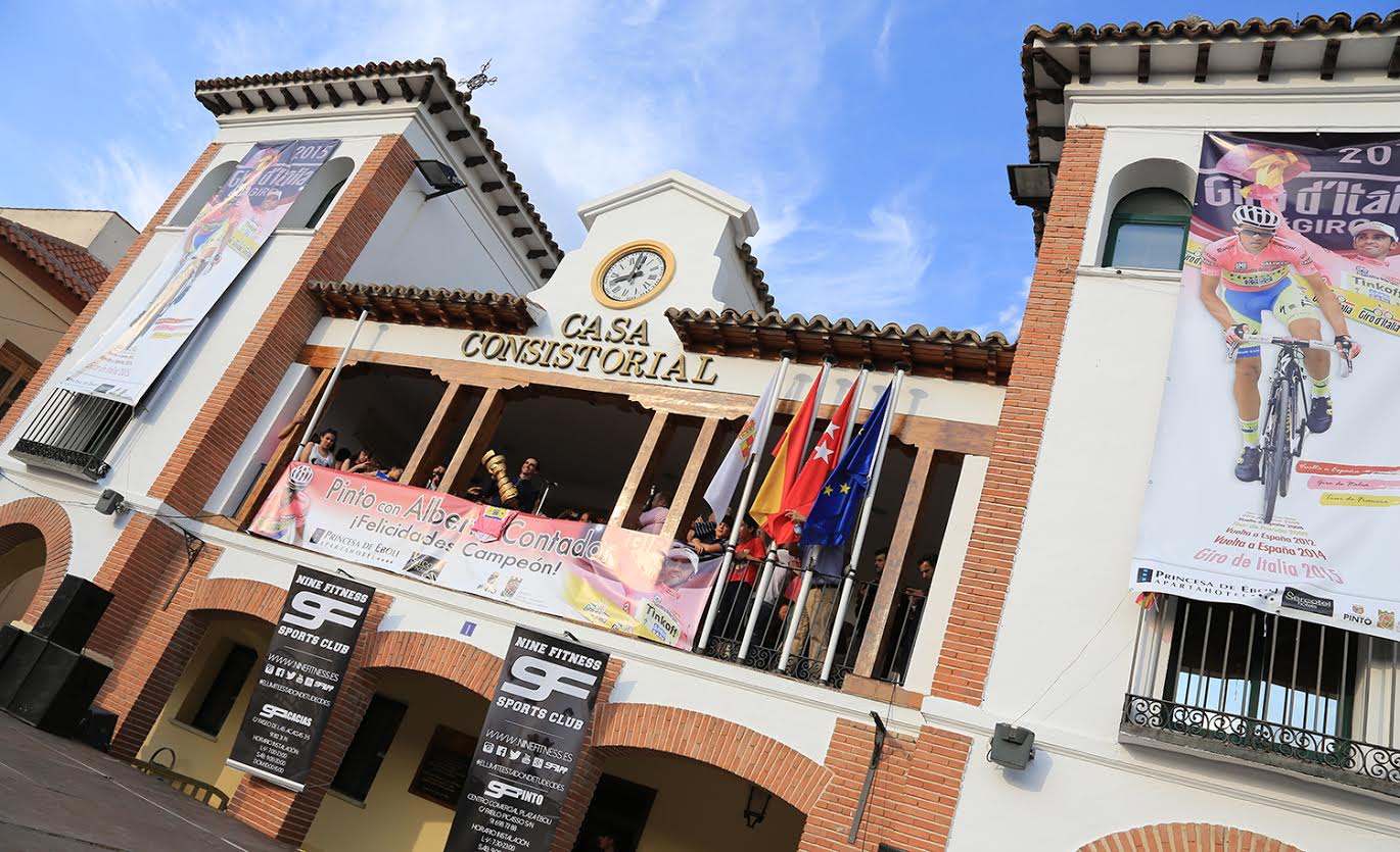 «El Giro ya está aquí; ahora a descansar y a por el Tour». Así se dirigió Alberto Contador a los cerca de tres mil vecinos que se dieron cita en la Plaza de la Constitución de Pinto (Madrid) para recibir al vencedor de la ronda italiana de este año. «Pinto es mío, es mi vida, me ha visto crecer y correr por su calles», señaló el campeón. «Todos vosotros sois un granito más de motivación y de esfuerzo para conseguir el próximo Tour» concluyó Alberto entre el éxtasis del público asistente mientras mostraba desde el balcón del consistorio el trofeo que le acredita como vencedor del Giro 2015.