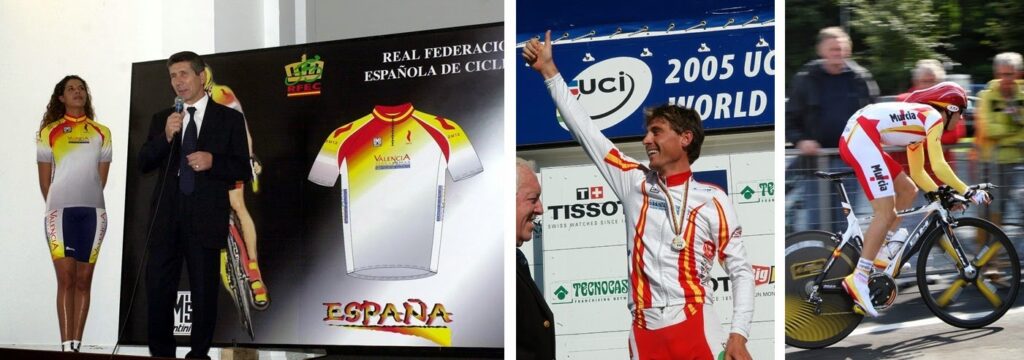 Sin embargo, el rojigualdo que se estrenará en Ponferrada cumple con los dos requisitos que se deben exigir a la vestimenta nacional. Por un lado, visibilidad. Y es que recuerdo mis apuros en eventos como el Mundial de Copenhague para intentar distinguir el anterior maillot en el masivo pelotón a la hora de tomar fotos. Problema que también tenían los masajistas a la hora de avituallar, por cierto. Y, por otro, identificación nacional. Durante unos años, parecía que eso de ‘la roja’, de origen futbolero, se iba a extender a todos los equipos nacionales. Incluso en 2009 nuestra selección adoptó ese color de forma mayoritaria en el maillot… aunque todo se desvaneció y no ha podido mantenerse el rojo como símbolo patrio, a semejanza del ‘azurro’ italiano o el ‘oranje’ neerlandes. Y dado que este primer identificativo no ha cuajado, nada mejor que recurrir a los colores de la bandera, algo que no hace mucho tiempo se hizo, en el maillot de Londres 2012, claro precursor del neonato, y en cuyo diseño participé de una forma significativa, aunque creo que se podía haber mejorado aún más.
