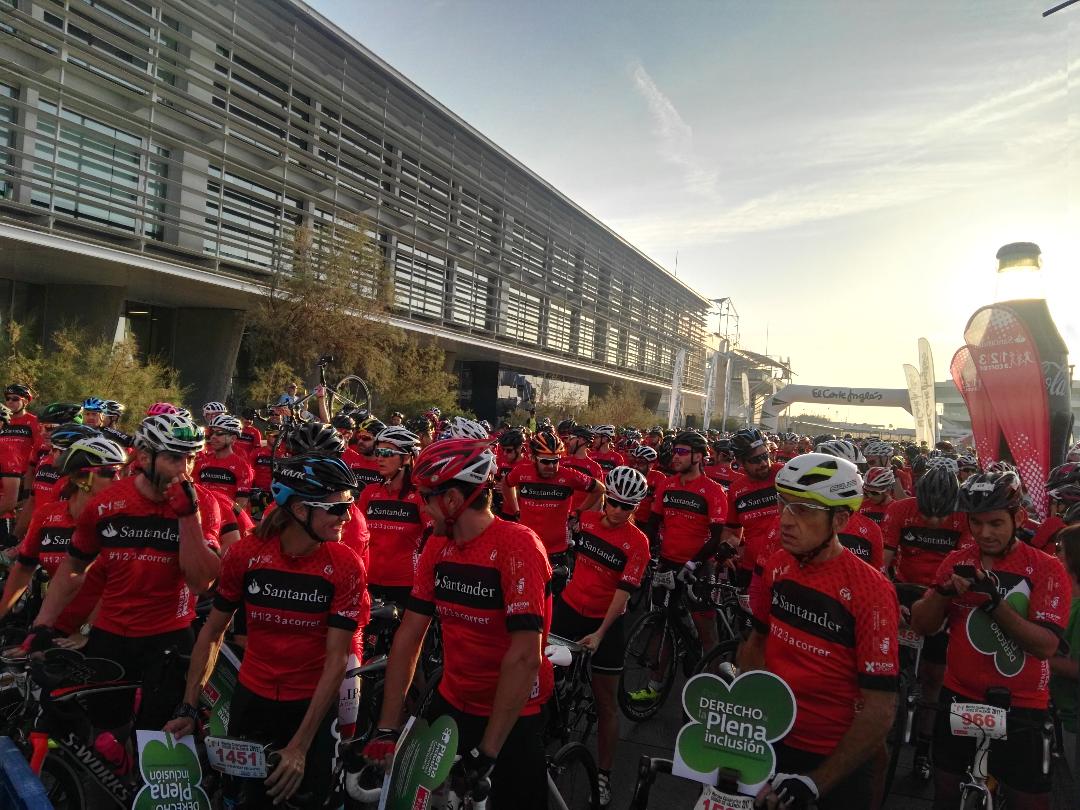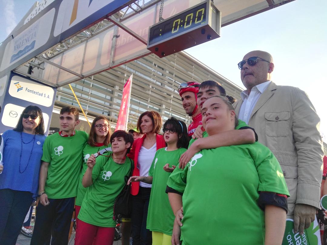 La Marina Real fue el escenario donde, tras la recogida de dorsales y actuaciones de grupos de rock autóctonos, comenzó la actividad. La abrió la marcha ‘Por la plena inclusión’, donde personas con diversos grados de discapacidad pedalearon apadrinados por el invitado de 2017, el único ciclista español con 18 Tours a sus espaldas Haimar Zubeldia.
