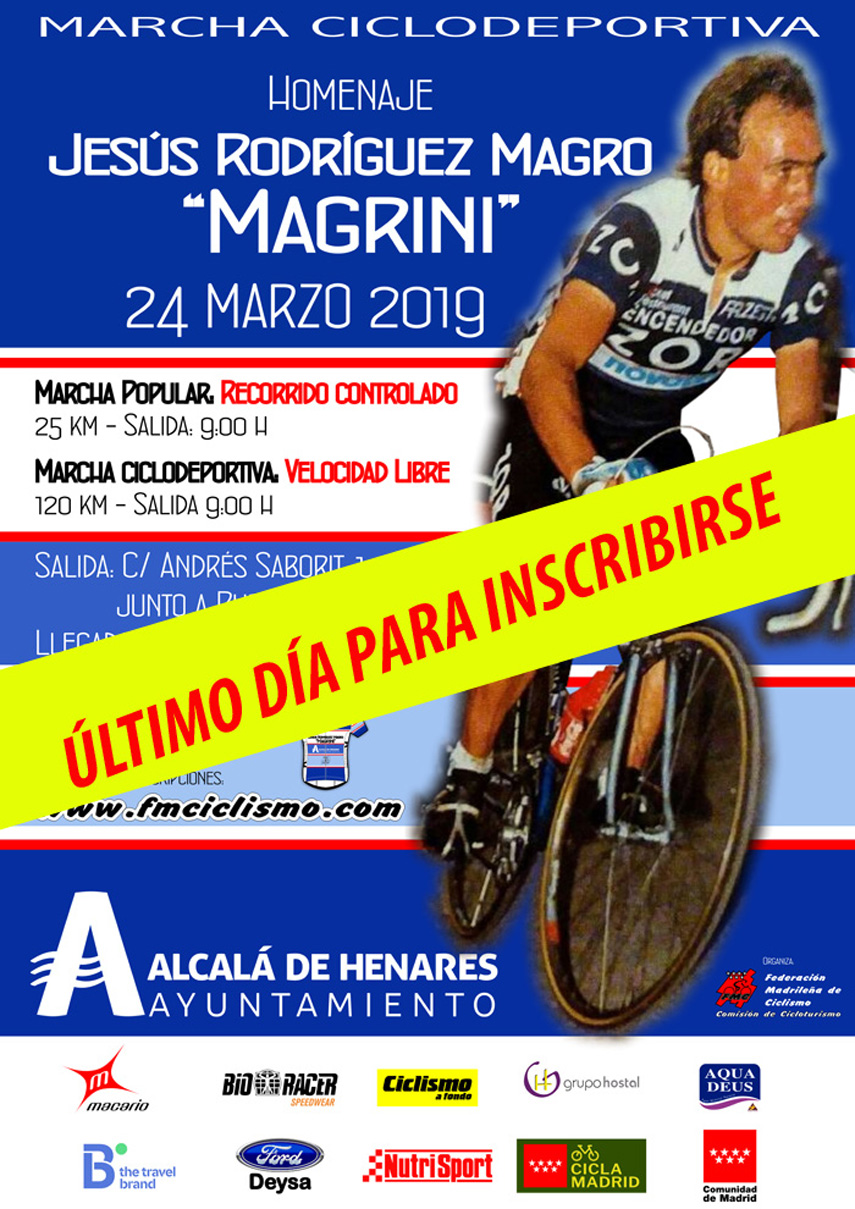 Alcalá de Henares acogerá el próximo día 24 de Marzo la primera edición de la Marcha Ciclodeportiva Homenaje a Jesús Rodríguez Magro. La Federación Madrileña de Ciclismo se encarga de la organización en colaboración con el Ayuntamiento del municipio.
