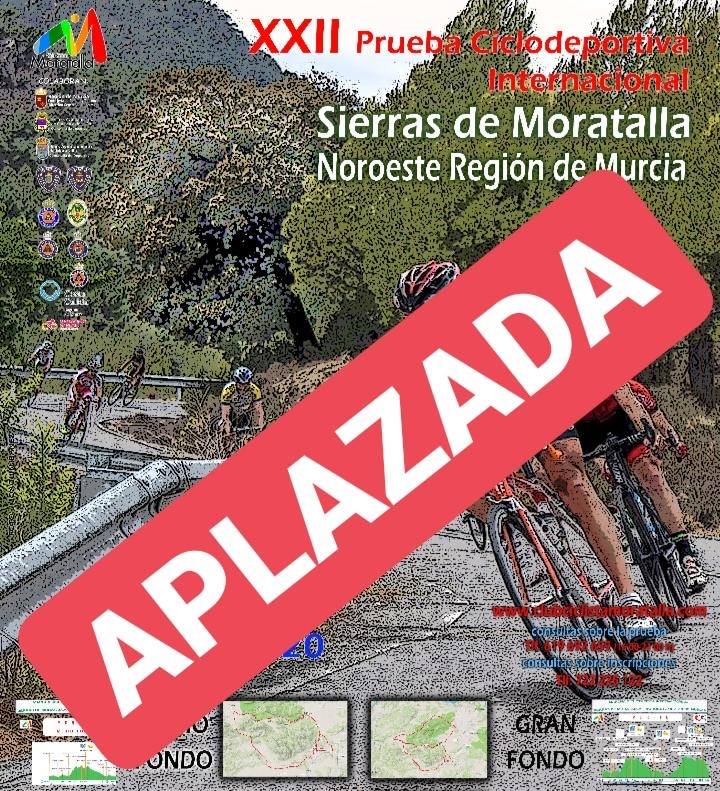 Después de analizar y sopesar las circunstancias que desde hace unas semanas nos acontecen en relación al COVID-19, y siguiendo los principios de prudencia y responsabilidad, y en consonancia con las recomendaciones de las autoridades competentes, el Club Ciclista Moratalla ha tomado la decisión de aplazar la celebración la XXII Prueba Ciclodeportiva Internacional “Sierras de Moratalla-Noroeste Región de Murcia” que estaba prevista para el próximo 24 de mayo.