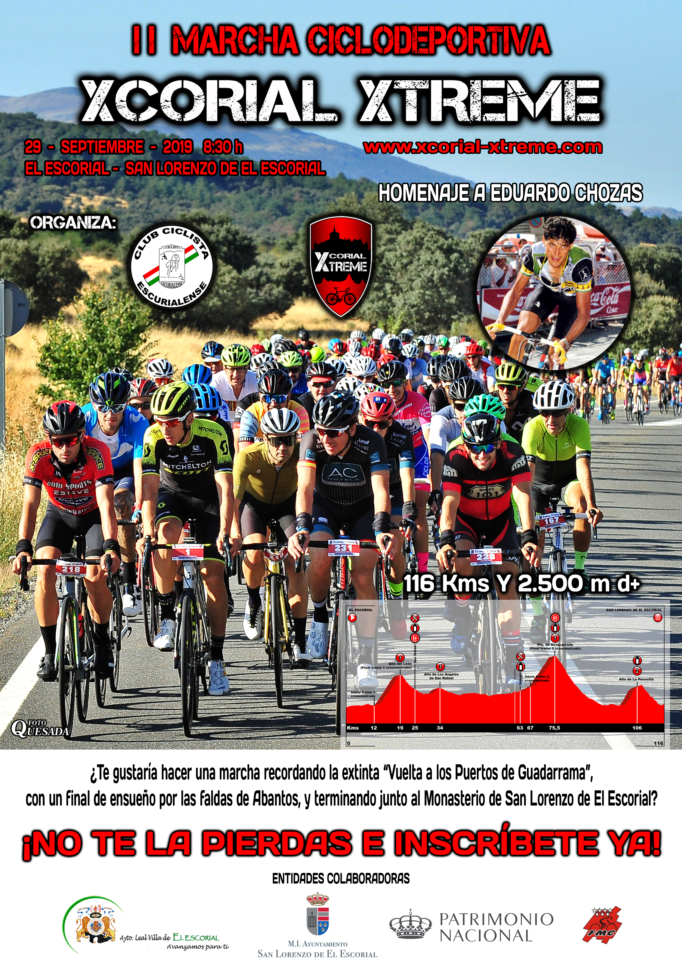 La Marcha Ciclodeportiva Xcorial Xtreme volverá a rodar por la sierra madrileña de Guadarrama el próximo 29 de septiembre. A la marcha cicloturista acudirán cientos de ciclistas de la modalidad de carretera junto al exciclista profesional y comentarista de Eurosport, Eduardo Chozas, que este año será el invitado de honor. Chozas fue uno de los mejores ciclistas españoles de los años 80, con victorias en el Tour de Francia y en el Giro de Italia, además de haber acabado entre los 10 mejores de la clasificación general de las tres grandes vueltas y ser el corredor más combativo del Tour de Francia de 1990.