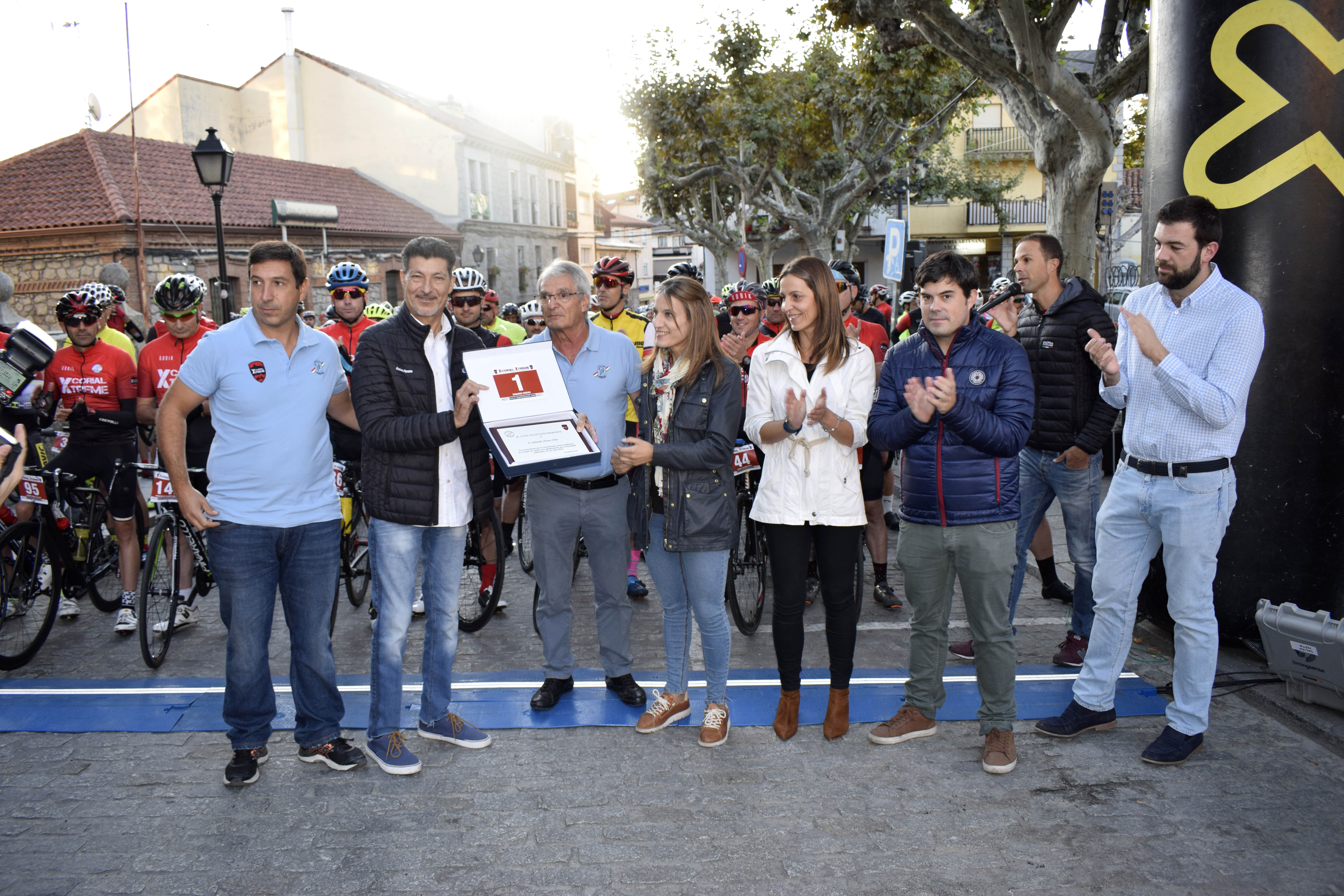 A la salida acudía el exciclista profesional y varias veces ganador de etapa, tanto en el Tour de Francia como en el Giro de Italia, Eduardo Chozas, que era homenajeado por el club organizador en nombre de Victorino López, Pablo Quesada y Juan Manuel Mateos; por la alcaldesa de San Lorenzo de El Escorial, Carlota López y el concejal Miguel Ángel Montes; y por los concejales de El Escorial, Mariví Alonso e Ignacio Parra. “Es un orgullo recibir este reconocimiento, sobre todo aquí, en mi zona habitual de entreno, ya que es la primera vez que reconocen mi trayectoria como ciclista profesional en la Comunidad de Madrid”.