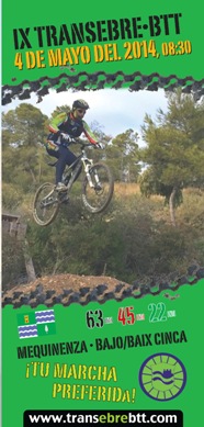 Más de 200 ciclistas tomarán la salida en la IX Transebre BTT de Mequinenza este domingo 4 de mayo. El Club Ciclista Mequinenza, organizador de la prueba, se muestra muy satisfecho con la participación a pesar de las dificultades, motivadas por las fechas de la celebración, entre ellas el cambio de trazado ante la prohibición de circular por la N-211 por la operación retorno.