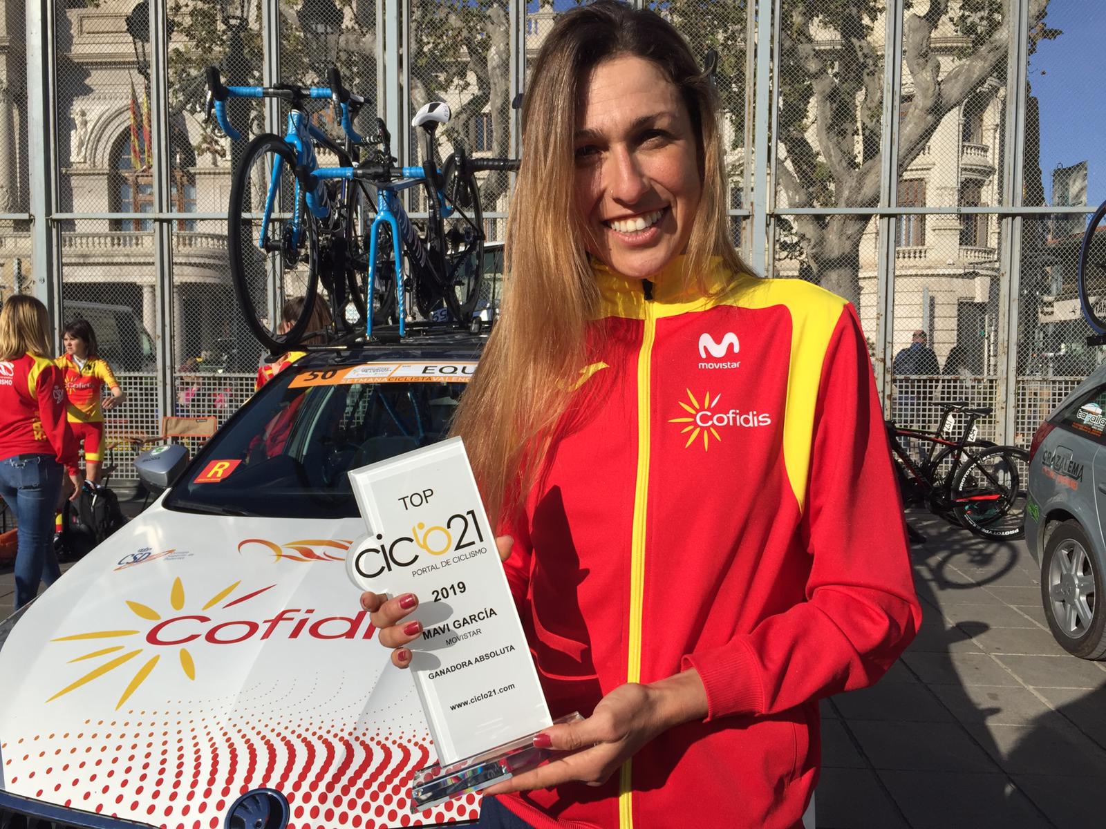 La mejor española del año por tercera vez en los últimos cuatro años en el calendario UCI de carretera. No lo dicen votaciones populares sino los puntos del baremo del TOP Ciclo 21, la clasificación a la fémina doméstica más destacada de la campaña. Y María Victoria «Mavi» García Cañellas (Marrachí, Mallorca, 2 de enero de 1984) ya tiene tres ediciones: 2019, 2018 y 2016, la última vistiendo los colores del Movistar y la selección española y superando a Ane Santesteban y Eider Merino en la clasificicación. Belén López en 2015 y Sheyla Gutiérrez en 2017 completan el palmarés.