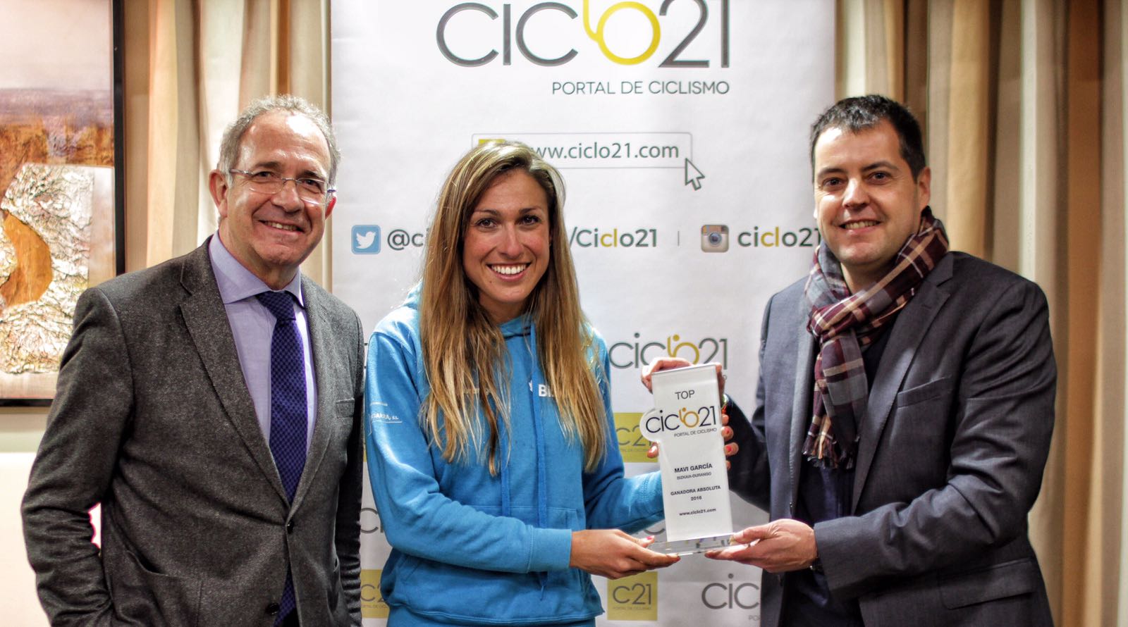 Margarita Victoria «Mavi» García Cañellas (Palma, Baleares, 2 de enero de 1984) ha sido en 2016 la sensación del pelotón femenino profesional español. Sin apenas experiencia en este deporte, la corredora del Bizkaia-Durango se proclamó campeona de España de fondo en carretera, bronce en contrarreloj, autora de nueve victorias -entre ellas cinco pruebas de la Copa de España y la Vuelta a Burgos– y segunda en la general final del torneo de la RFEC tras la austriaca afincada en Catalunya, Anna Kiesenhofer. Números insuperables para el resto que le han dado el segundo TOP Ciclo 21 -sucediendo a Belén López– a la mejor ciclista española del año en carretera. Las sub-23 Sheyla Gutiérrez y Eider Merino completaron un podio que la campeona del mundo de duatlón mixto y bronce individual copa con autoridad a sus entonces 32 años. Con 33 aspira a «mejorar mi rendimiento y los resultados ya vendrán». Un trofeo -«qué bonito es» exclamó- que este medio le entregó a domicilio en Palma. Será de nuevo favorita a quedarse un segundo ataviada hasta junio con su nuevo maillot rojigualda.