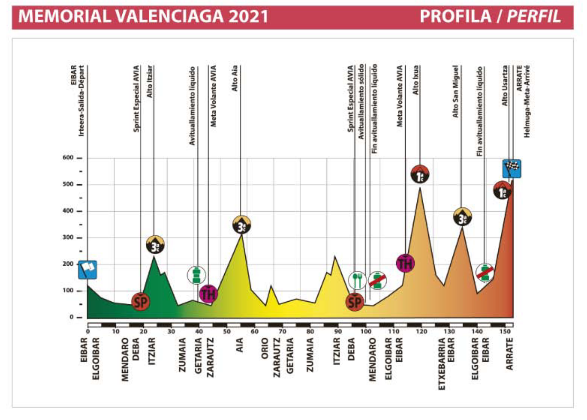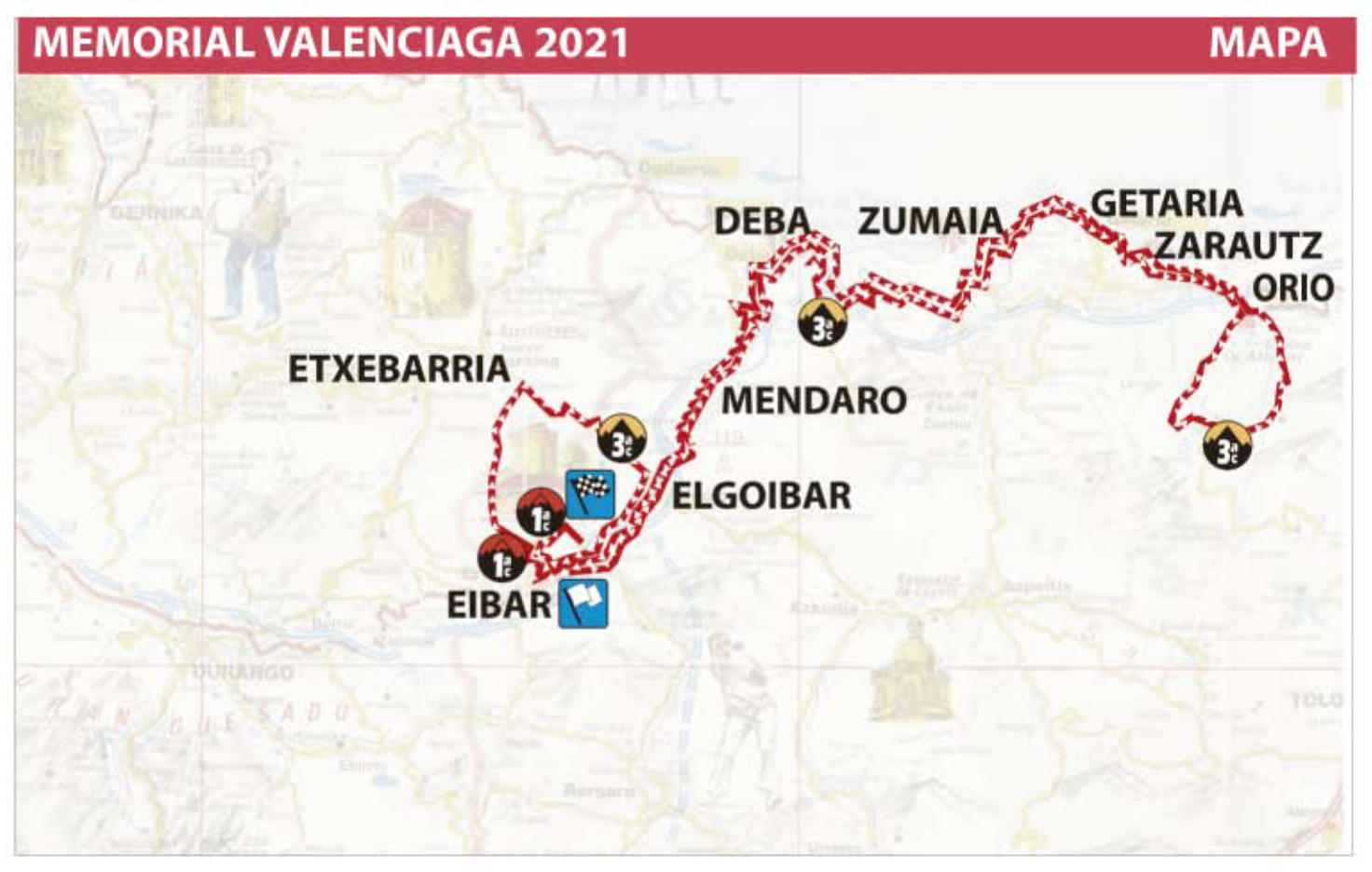 La 50ª edición del Memorial Valenciaga arrancará a las 9:30 h en Eibar, en la Plaza de Untzaga, para encarar un tramo favorable antes de iniciar en la localidad de Deba el primer puerto, el Alto de Itziar de tercera categoría, situado a tan solo 24 kilómetros de la salida. En el kilómetro 55 les espera el Alto de Aia, también de tercera categoría, donde los ciclistas llegarán a través de un bonito recorrido de ida y vuelta junto a las costas del Mar Cantábrico. El Alto de Ixua, de primera categoría y situado a falta de 33 kilómetros de meta, bien podría ser clave para efectuar la selección definitiva, pues nada más terminar su descenso empezará la ascensión al Alto de San Miguel, de tercera, que será el paso previo a la subida final al Alto de Usartza, de primera categoría, y la llegada a Arrate.