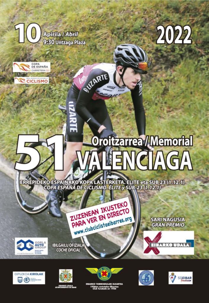 El próximo domingo 10 de abril se celebra la 51ª edición del Memorial Valenciaga, la prestigiosa prueba para elite y sub-23 con sede en localidad vasca de Eibar y organizada por el Club Ciclista Eibarrés, que en ediciones anteriores ha coronado a ciclistas de la talla de Óscar Freire, Joaquim ‘Purito’ Rodríguez, Julián Gorospe o Mikel Nieve. Un año más será puntuable para la Copa de España de las categorías.