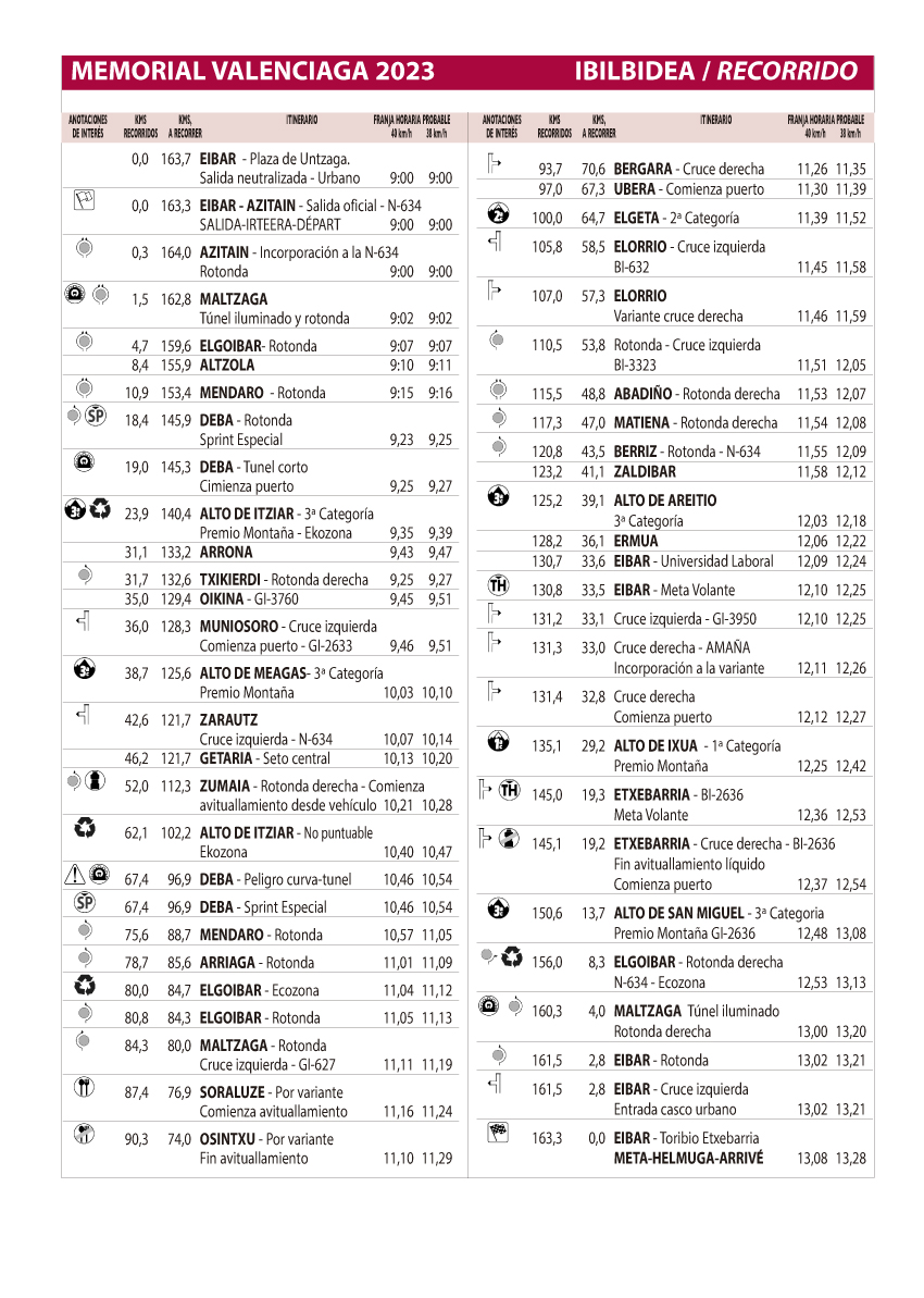 Como no puede ser de otra forma en una cita en Eibar y el País Vasco, la montaña será la predominante en el perfil, especialmente en los últimos kilómetros, con el durísimo alto de Ixua como plato principal y como el punto culminante de la carrera, antes de volver de nuevo a Eibar, que será el escenario tanto de la salida como de la llegada.