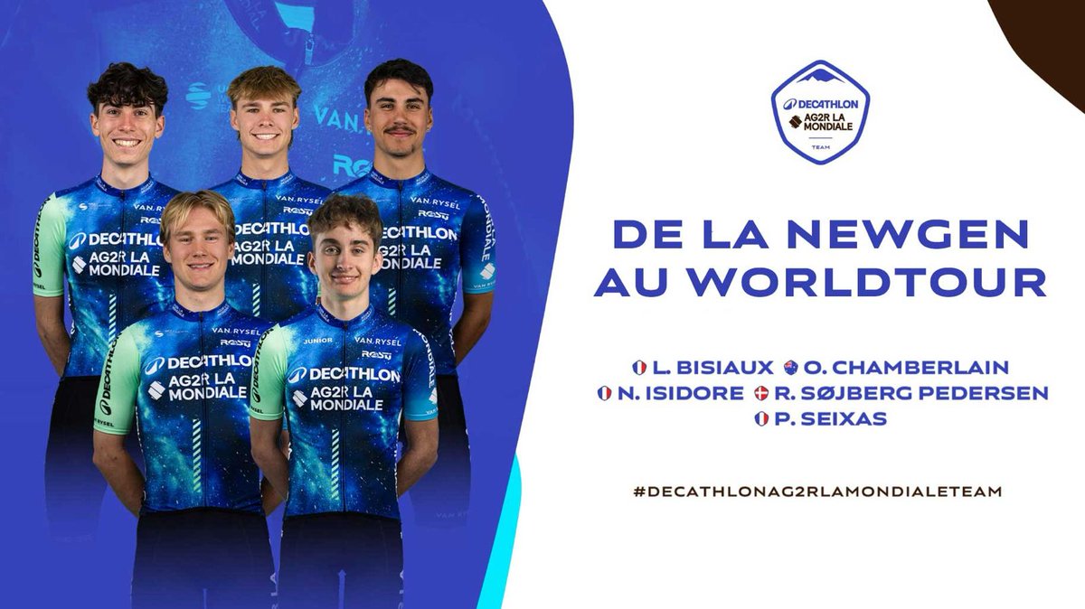 DECATHLON (FRA): Paul Seixas (FRA/Decathlon continental), Rasmus Sojberg Pedersen (DIN/Decathlon continental), Léo Bisiaux (FRA/Decathlon continental), Oscar Chamberlain (AUS/Decathlon continental), Noa Isidore (FRA/Decathlon continental), Stefan Bisseger (SUI/Team Education), Johannes Staune-Mittet (DIN/Visma), Callum Scotson (AUS/Groupama), Tord Gudmestad (NOR/Uno-X)