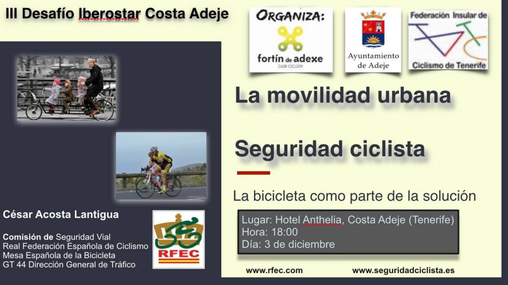 Aprovechando la celebración de una importante marcha cicloturista en Tenerife, el club Fortín de Adeje, con la colaboración de la Comisión de Seguridad Vial de la RFEC, organiza una charla coloquio con el título ‘La movilidad urbana. Seguridad ciclista’.