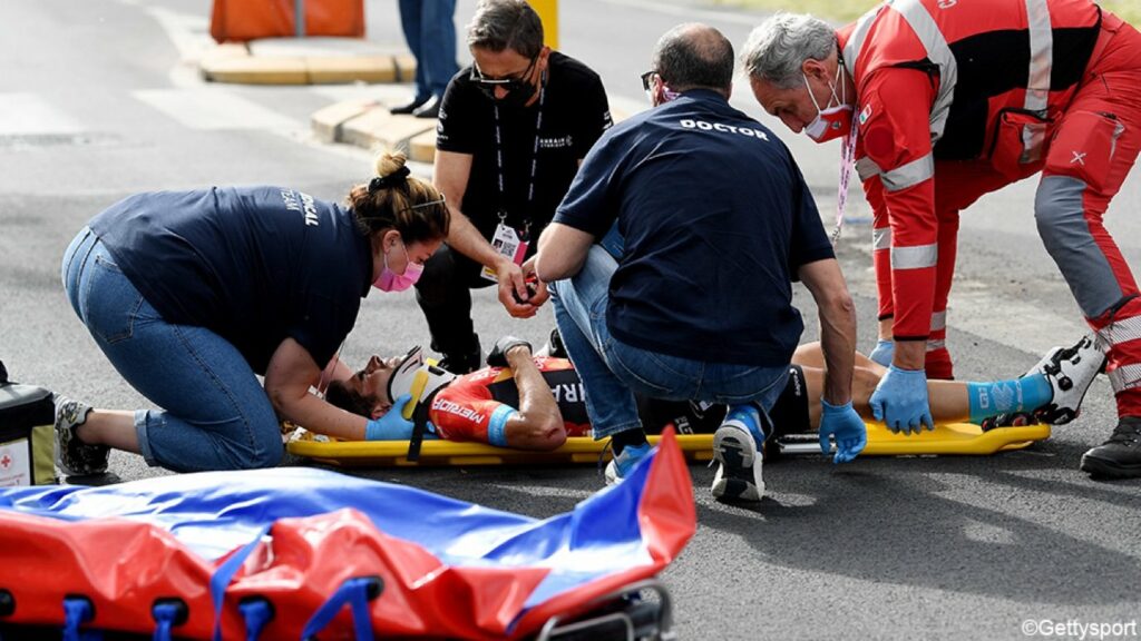 Enseguida quedó claro que el Giro había terminado para Landa. Permaneció tendido en el suelo durante mucho tiempo y finalmente fue trasladado por una ambulancia con signos de dolor tanto en su hombro derecho como la zona de la cadera del mismo lado. Tras las primeras valoraciones, en el Hospital de Riccione, donde está recibiendo tratamiento por una fractura de clavícula y múltiples costillas en su lado izquierdo. Landa pasará la noche en el hospital en observación y se someterá a pruebas más profundas para valorar en su totalidad la salud del corredor español.