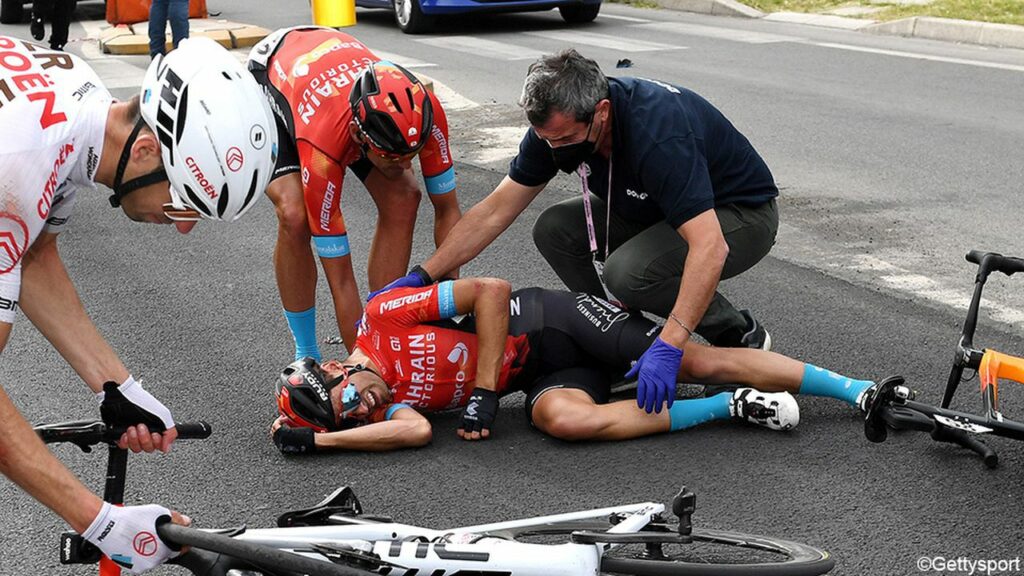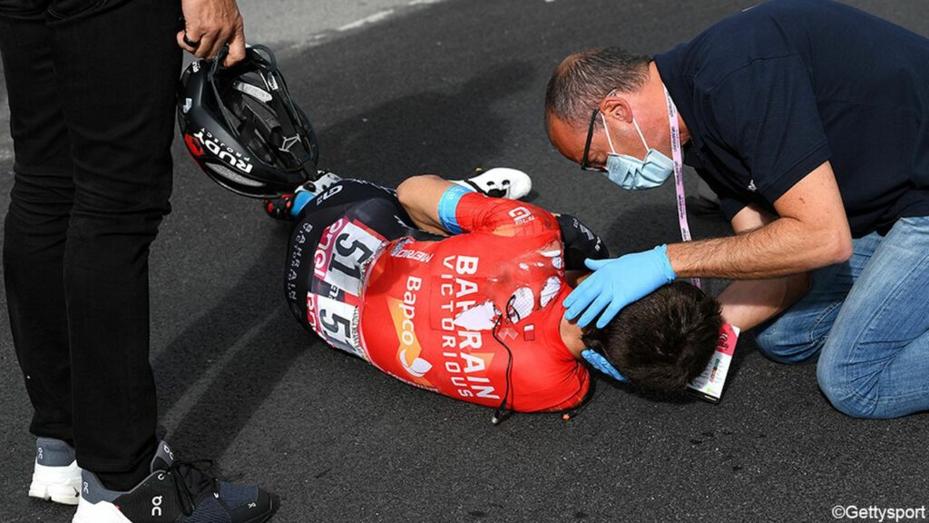 Drama para Mikel Landa en el Giro. El corredor español sufrió una fuerte caída en el final de la 5ª etapa y ha sido trasladado al hospital. El corredor del Bahrain-Victorious era uno de los favoritos para la victoria final.