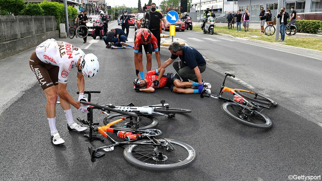 Mikel Landa había viajado a Italia con ambiciones confirmó su excelente estado de forma en la dura 4ª etapa de ayer. Pero en la fase final de la fatídica 5ª etapa la suerte se cebó con el líder alavés. Joe Dombrowski, el ganador de la etapa de ayer, chocó con un oficial de carrera apostado sobre una mediana y éste, a su vez, irremediablemente tiró a Landa, que no pudo evitarlo.