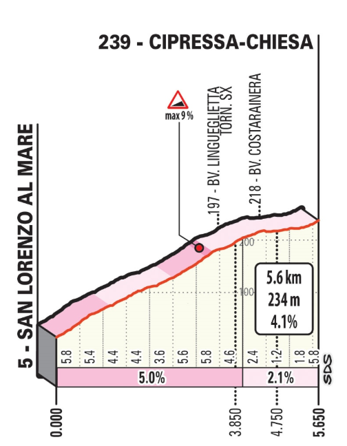 Fausto Masnada (Androni-Sidermec), Mirco Maestri, Alessandro Tonelli (Bardiani-CSF), Guy Sagiv (Israel Cycling Academy), Luca Raggio, Sebastian Schönberger (Neri Sottoli-Selle Italia-KTM), Joonas Henttala, Andrea Peron, Charles Planet y Umberto Poli (Team Novo Nordisk) fueron los protagonistas de la fuga del día. La escapada de diez unidades llegó a contar con once minutos de ventaja sobre el pelotón, pero el trabajo de UAE Team Emirates, Lotto Soudal, BORA-Hansgrohe y Deceuninck-Quick Step, entre otros, rebajó la diferencia hasta los siete minutos tras el Passo del Turchino.