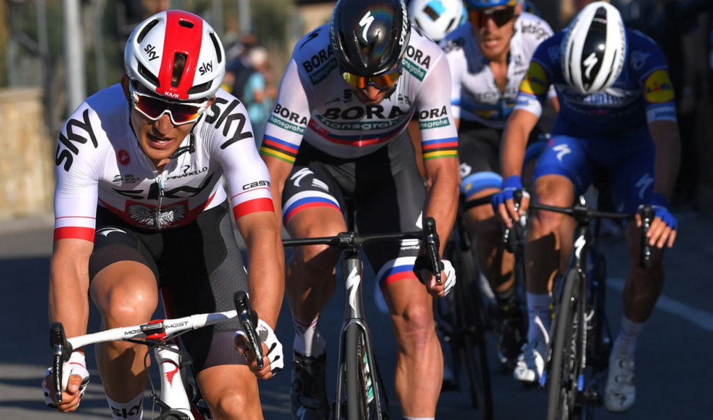 Michal Kwiatkowski (3º): «Cuando terminas tan cerca de la victoria, por supuesto te preguntas qué hiciste mal, qué más necesitas para ganar, Dicho esto, todos estaban en el límite al pie del Poggio, así que cuando veo la carrera de Alaphilippe, estoy feliz de estar en el podio. Era el más fuerte hoy, quiero felicitarlo. Su ataque en el Poggio, luego sus piernas en el sprint … Fue impresionante. El grupo fue más grande que en 2017. Este año, hubo más corredores que intentaron evitar el sprint. Fue un final aún más intenso. Todos sentimos el peso de la carrera en los últimos 2-3 kilómetros. Alaphilippe fue el más fuerte y se merece su título. Todos lo estaban esperando y ganó otra prueba» en declaraciones a cyclingpro.