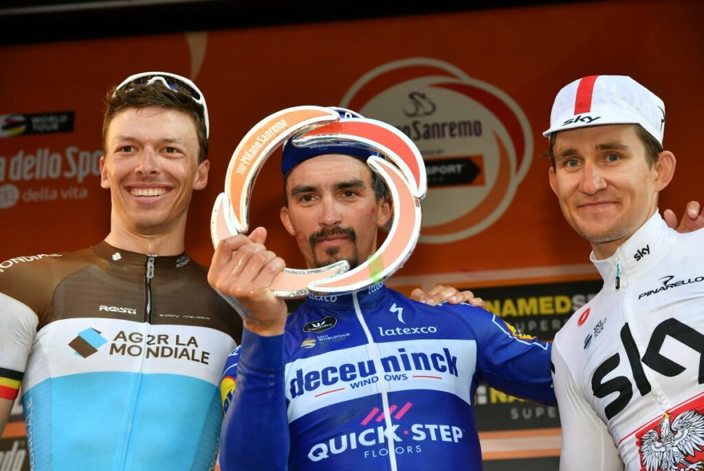 Julian Alaphilippe (Deceuninck-Quick Step) inscribió su nombre entre los más grandes. El francés se impuso en la 110ª edición de la Milán-San Remo en un vertiginoso y brillante desenlace rematado con un sprint reducido entre algunos de los mejores clasicómanos de la década. Oliver Naesen (Ag2r La Mondiale), segundo, y Michal Kwiatkowski (Sky), tercero, completaron el podio, mientras que Alejandro Valverde (Movistar) terminó en la séptima posición, su mejor resultado en la Classicissima.