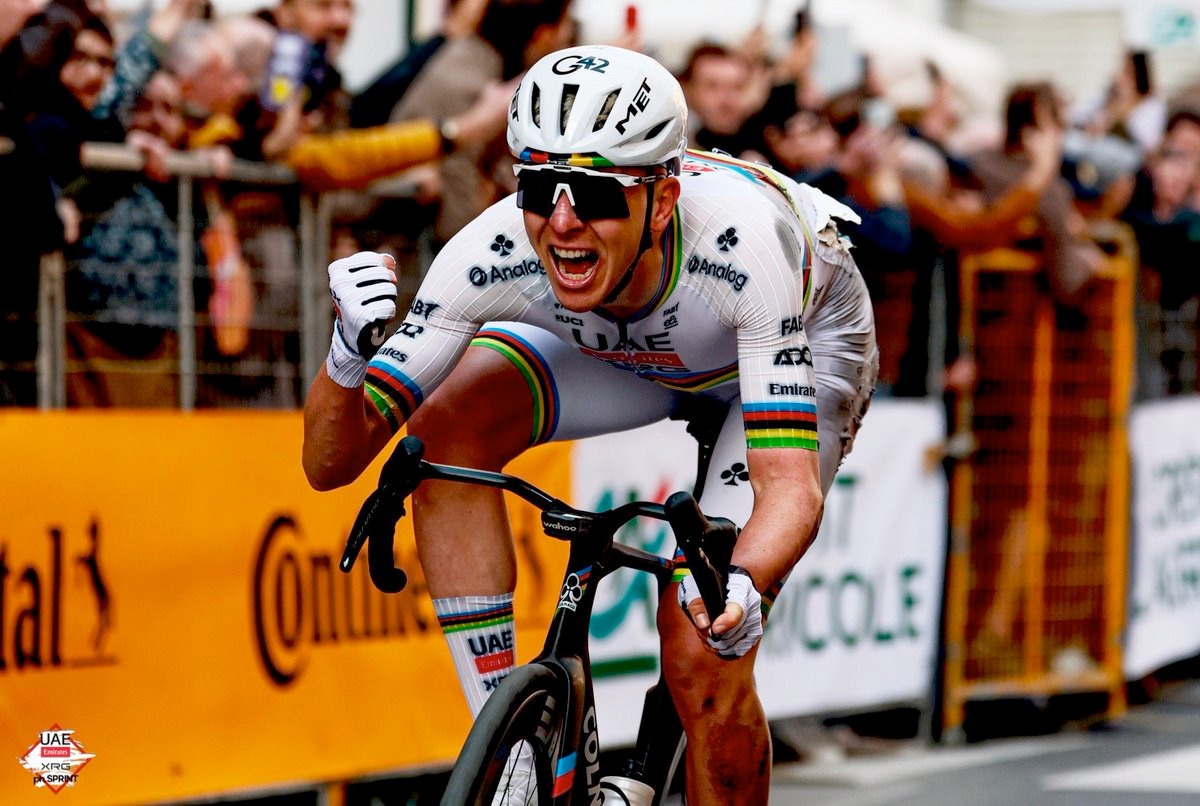 «Esto es para todos los seguidores. Todo el equipo ha luchado para que llegáramos rápido al grupo tras la caída. Ha sido una gran carrera de todo el grupo. Se ha ido muy rápido, sobre todo al final. Lo he intentado en el Poggio, pero Pidcock estaba muy fuerte y no lo he podido soltar. Al final nos lo hemos jugado en un apretado esprint. Tom es muy rápido y sabía que sería difícil, pero he podido ganar en la misma línea de meta».