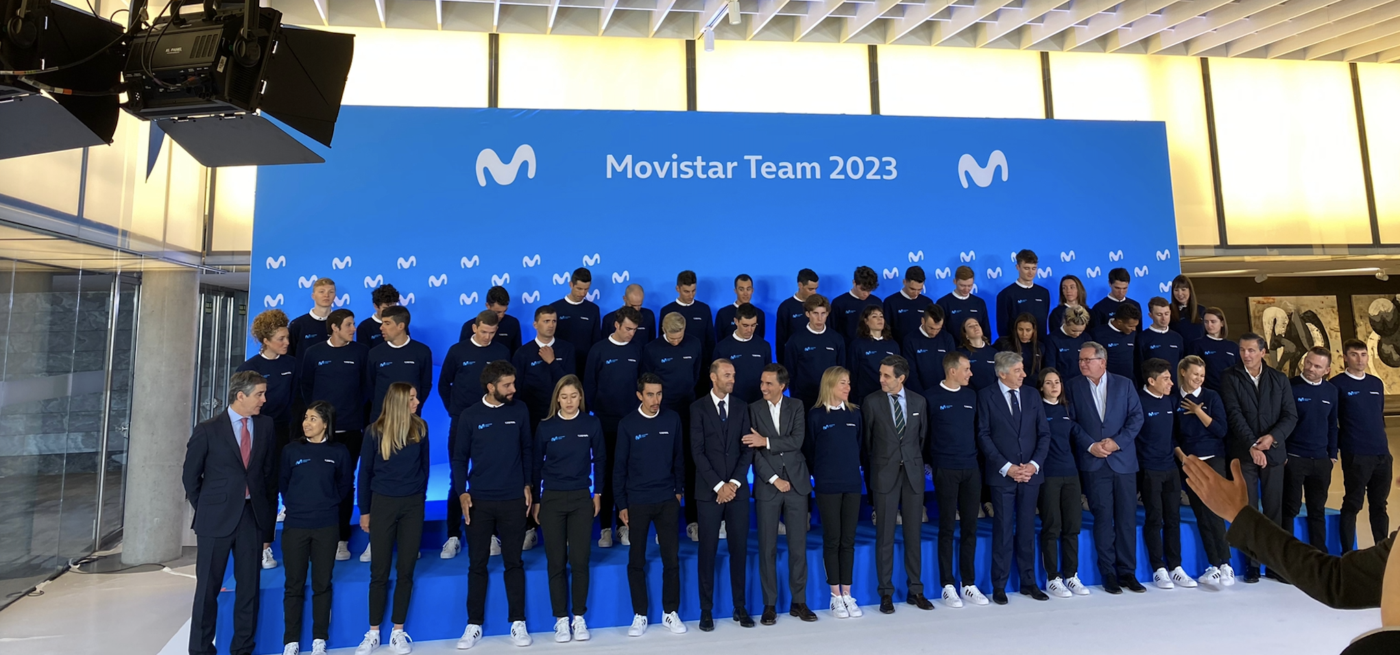 El equipo Movistar se vistió de largo para presentar la plantilla masculina y femenina que defenderá los colores telefónicos durante la temporada 2023. Un evento que se celebró en el Auditorio del Distrito Telefónica (Madrid) y en el que se desgranaron las primeras pinceladas del único equipo español del World Tour. Será la 44ª temporada consecutiva de actividad del conjunto de mayor trayectoria del pelotón internacional, con más de 1.000 victorias y un presente tan brillante como su historia gracias a los 46 triunfos obtenidos en 2022. Las apuestas de futuro del conjunto azul, en su decimotercera campaña con el patrocinio principal de Telefónica, estuvieron presentes junto a los corredores más veteranos.