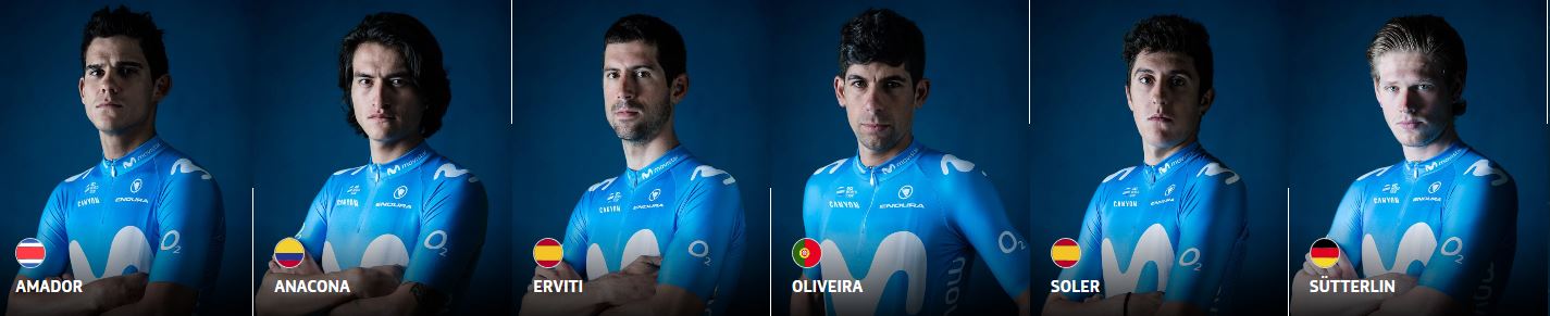 Andrey Amador, Winner Anacona, Nelson Oliveira, Jasha Sütterlin y los españoles Imanol Erviti y Marc Soler serán los encargados de defender los intereses telefónicos en el trazado de 62 kilómetros que repartirá las medallas (que no maillots arcoíris) de la especialidad contra el crono grupal.