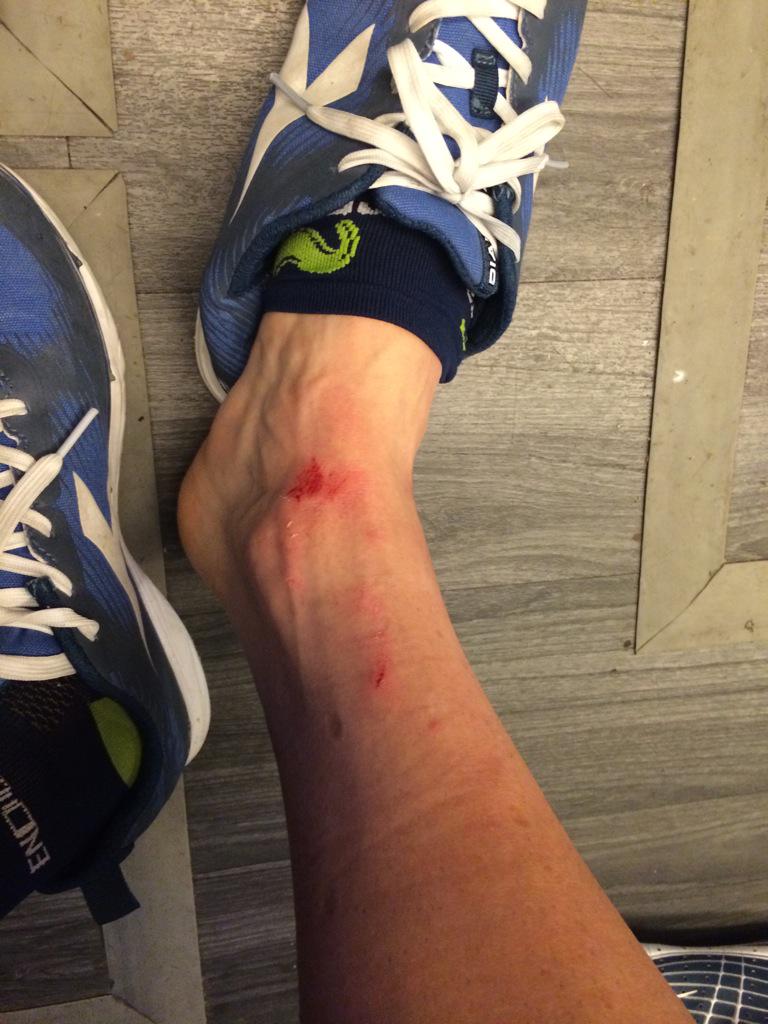 El ciclista de Trebujena se iba al suelo tras sufrir un enganchón con una rama entre sus ruedas, sufriendo una contusión en uno de sus tobillos que será examinada por el médico azul en carrera, Alfredo Zúñiga, pero que no reviste en principio daños serios.