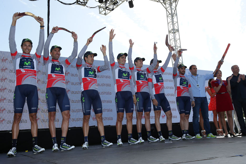 El triunfo final por equipos para Movistar Team rubricó el regreso de una historia de amor con Australia que ha visto a los azules -etapa con Ventoso en 2011, triunfo parcial y 2ª plaza con Valverde en 2012, podio general a cargo de Javi Moreno hace dos campañas- disfrutar de grandes momentos en las antípodas.