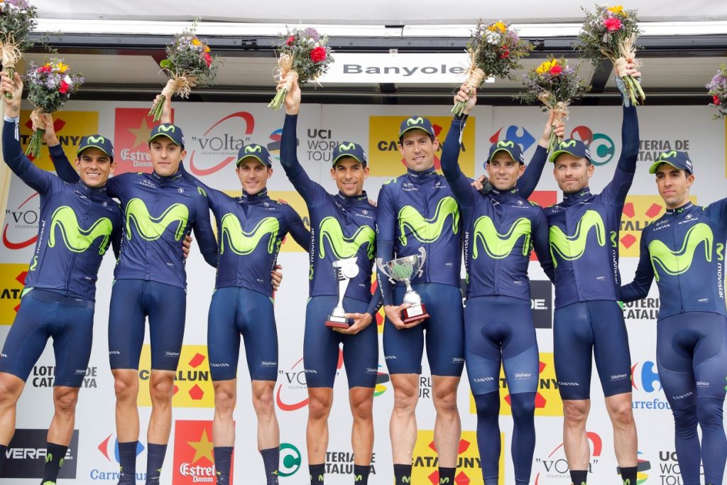 «Tras los hechos acontecidos después de la disputa de la contrarreloj por equipos de la Volta a Catalunya, y que han culminado con la sanción de un minuto para los ocho corredores que ayer consiguieron la victoria en la etapa, desde el equipo Movistar Team queremos mostrar nuestro total desacuerdo ante dicha sanción.