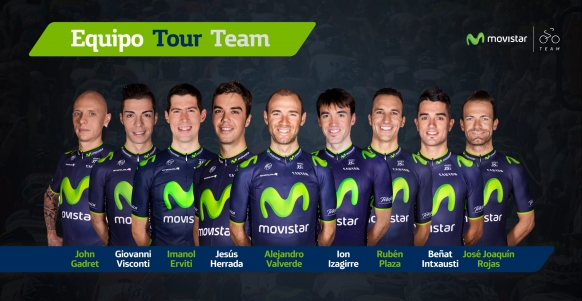 Con 22 victorias en el casillero de victorias de la temporada y con sus recientes títulos nacionales (Valverde campeón contrarreloj en España e Ion Izagirre, en el de ruta en Ponferrada) se presenta el Movistar Team ante la 101ª edición del Tour de Francia. La ronda gala arrancará el próximo sábado en Leeds y para la gran cita del año la escuadra de Eusebio Unzué ya tiene preparado el nueve que buscará repetir el podio final que en la pasada edición logró con Nairo Quintana.