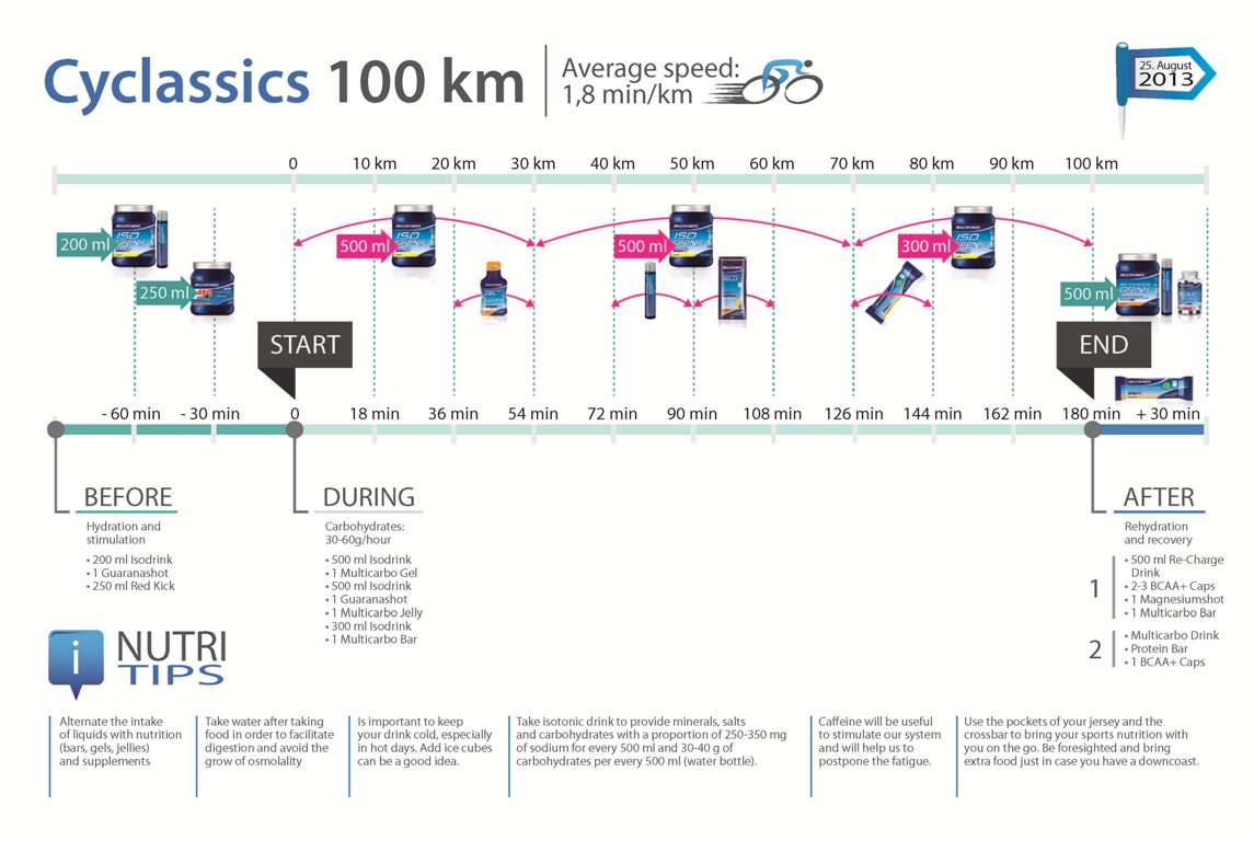 Sabedores de esto, nuestros nutricionistas especializados, José Miguel Martínez y Aritz Urdampilleta (ambos doctores en nutrición deportiva) han desarrollado diferentes planes nutricionales para afrontar los retos más comunes a los que te ves expuesto en ciclismo, triatlón y running. Mediante la creación de diferentes “time-lines”, adaptadas a diferentes distancias y el tiempo que se requiere, te mostramos gráficamente qué tomar antes, durante y después de la prueba. Esto es de gran ayuda ya que con una sola imagen puedes ver cronológicamente cómo adaptar tu nutrición y tu suplementación, y entender las necesidades a cubrir kilómetro a kilómetro y hora a hora.