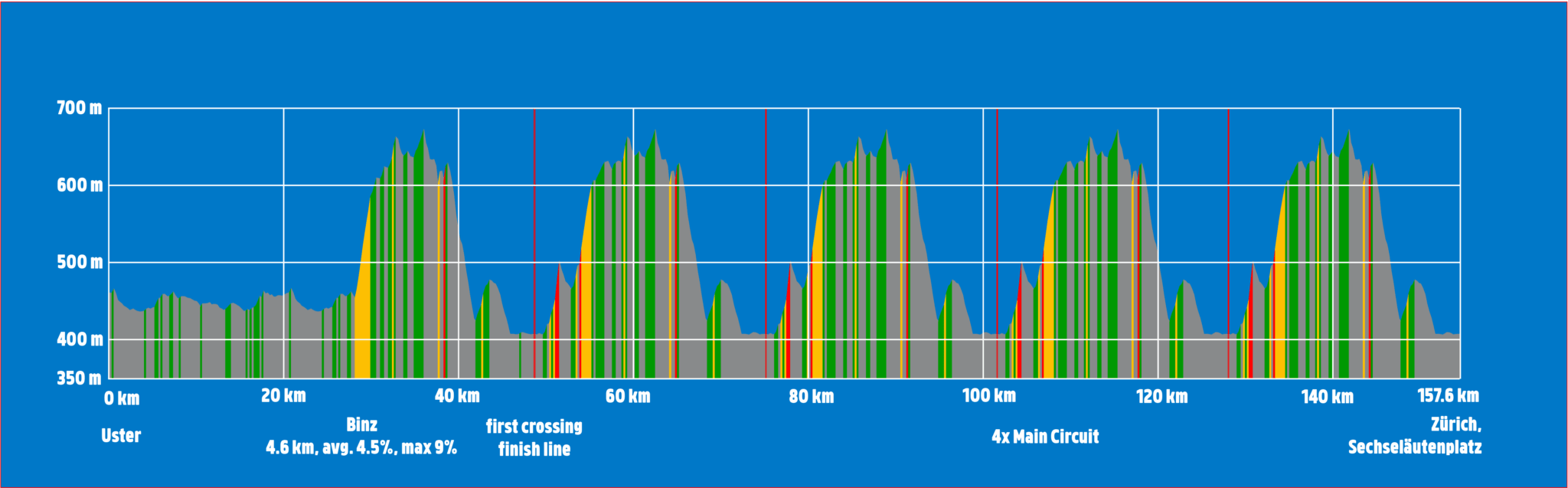 - Fondo élite féminas. Uster – Zúrich (154.1 km) (12:45-16:45)
