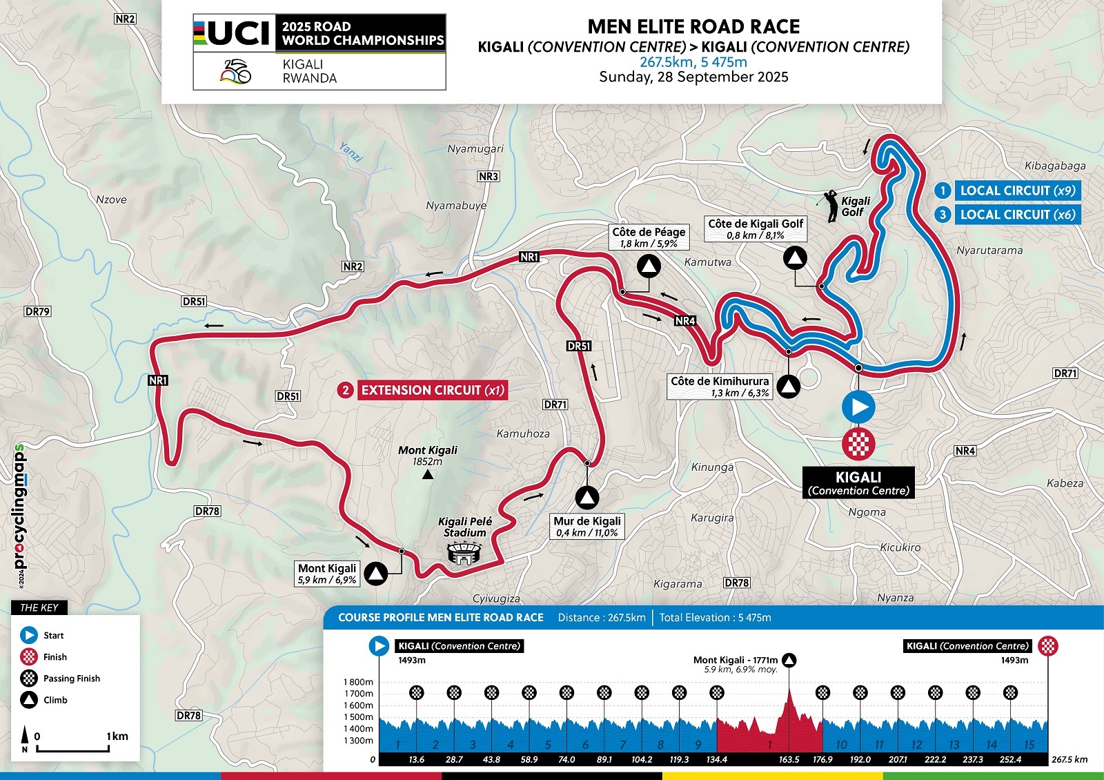 Como suele ser habitual la edición siguiente da detalles en la precedente. De esta forma el evento ruandés presentó el perfil y la altimetría de las pruebas. La elite masculina tendrá lugar el domingo 28 de septiembre sobre una distancia de 267,5 kilómetros y nada menos que 5.475 metros de desnivel, superando en 1.000 más los de Zúrich.