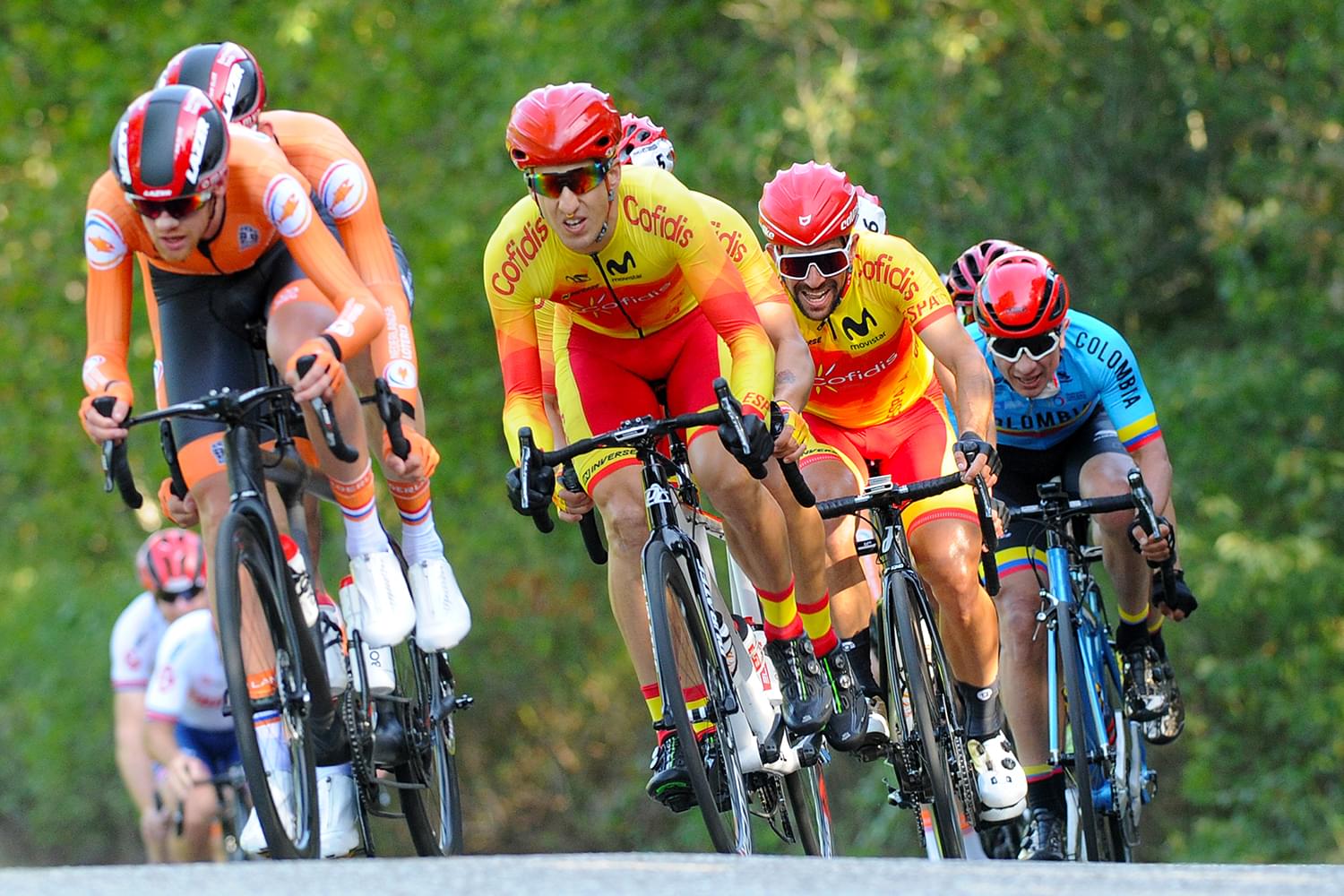 Un circuito de 10,4 km completamente llano, sin un solo repecho, por los alrededores de Emmen ha sido el escenario sobre el que se han puesto en juegos los maillots arcoíris contrarreloj para todas las clases de bicicletas y tándems.