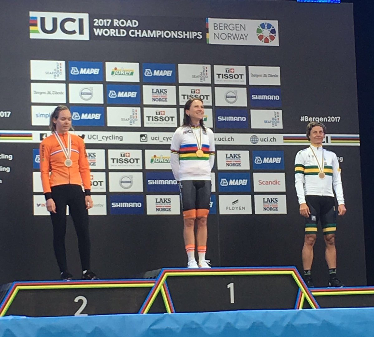 Son esos nombres que van sonando toda la temporada porque están en un gran estado de forma los que acaban triunfando en todo un Mundial, Hoy en la prueba elite femenina contra el crono se ha impuesto Annemiek Van Vleuten, la holandesa que ha estado todo el año mostrando un grandísimo nivel y que se corona en la CRI con 12 segundos de margen sobre la plata, en manos de otra ilustre, su compatriota Anna Van der Breggen, y con 18 sobre la austriaca Katrin Garfoot.