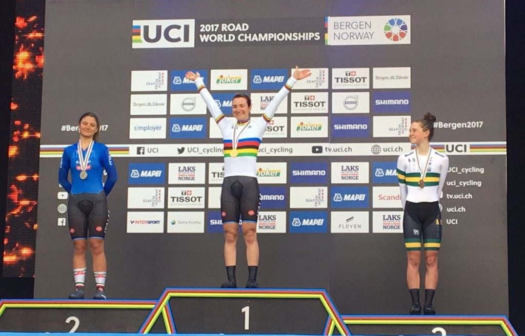 La selección italiana ha sido la dominadora del Campeonato del Mundo contrarreloj para féminas júnior con el oro de Elena Pirrone y la plata de Alessia Vigilia -primera en salir- y con la australiana Madeleine Fasnacht con el bronce.