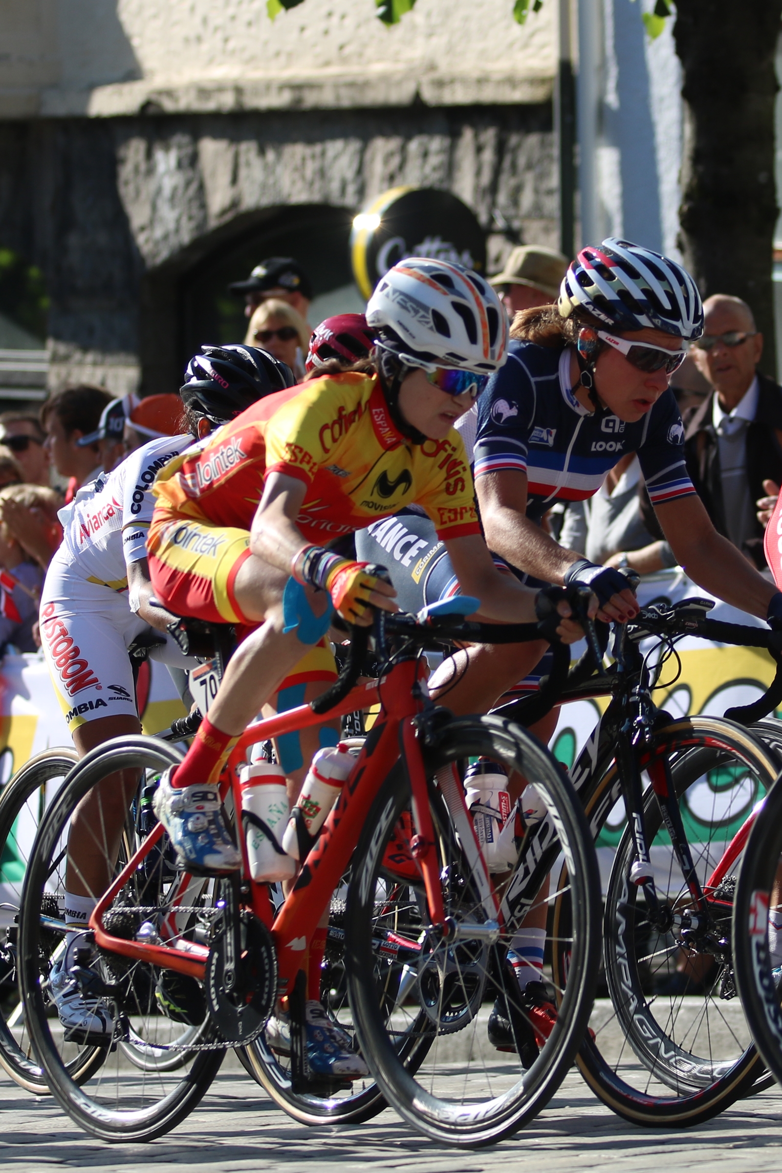 La carrera se inició sin excesiva presión. O eso transmitió. Asumían las corredoras, se entendía, la dureza de la prueba y la distancia, los más de 150 kilómetros que apuntaban a escabechina. Decía Sheyla Gutiérrez en sus declaraciones previas que era un circuito que le gustaba, ratonero, técnico, y se la vio realmente bien siempre. Delante, asomando su casco por la punta de lanza mientras las demás selecciones, especialmente Holanda, movían una ficha tras otra para hacer caer manzanas.