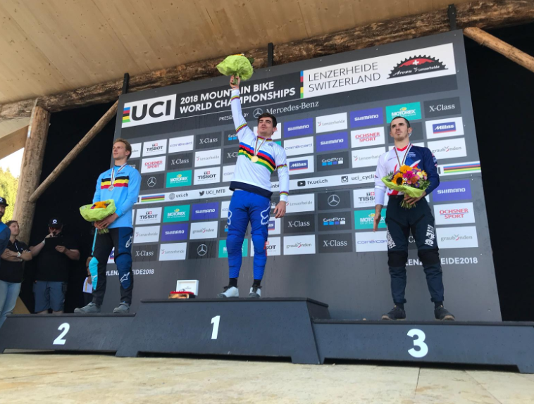 Loic Bruni (Francia) pudo mantener su título mundial en la especialidad de downhill (DHI) en el Campeonato Mundial de Lenzerheide, Suiza. El francés de 24 años venció al belga Martin Maes por dos segundos y al británico Danny Hart por tres. Este es el tercer título mundial para Loic Bruni después de 2015 y 2017. También es la segunda medalla de la delegación tricolor después de la medalla de bronce de Myriam Nicole durante la prueba femenina.