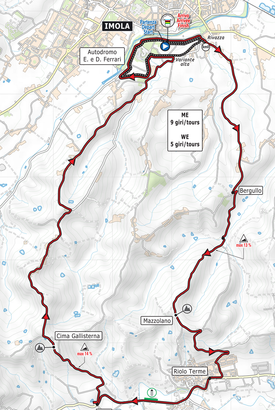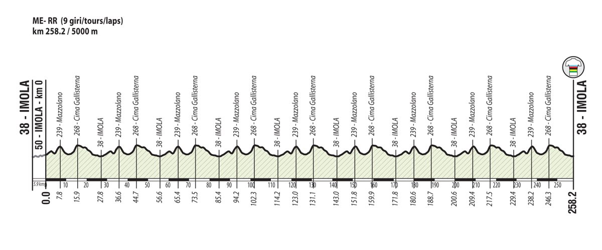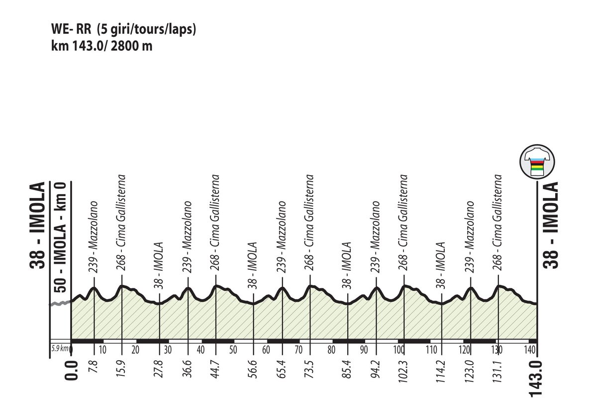 Serán, finalmente, 259,2 kilómetros para los hombres y 144 kilómetros para la prueba en línea femenina. En ambos casos, el circuito será de 28,8 kilómetros y contará con dos complicadas subidas que acumulan tres kilómetros de ascensión a una media del 10% llegando a alcanzar el 14% en alguna sección. La prueba masculina tendrá que transitar nueve veces por esa cima mientras que las mujeres lo harán en cinco ocasiones.