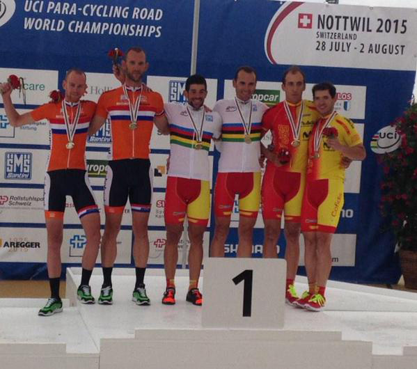 Excepcional balance de la participación española en el Mundial de ciclismo adaptado celebrado en Nottwil. El resultado de la crono de ayer se ha visto superado con creces en las pruebas de línea.