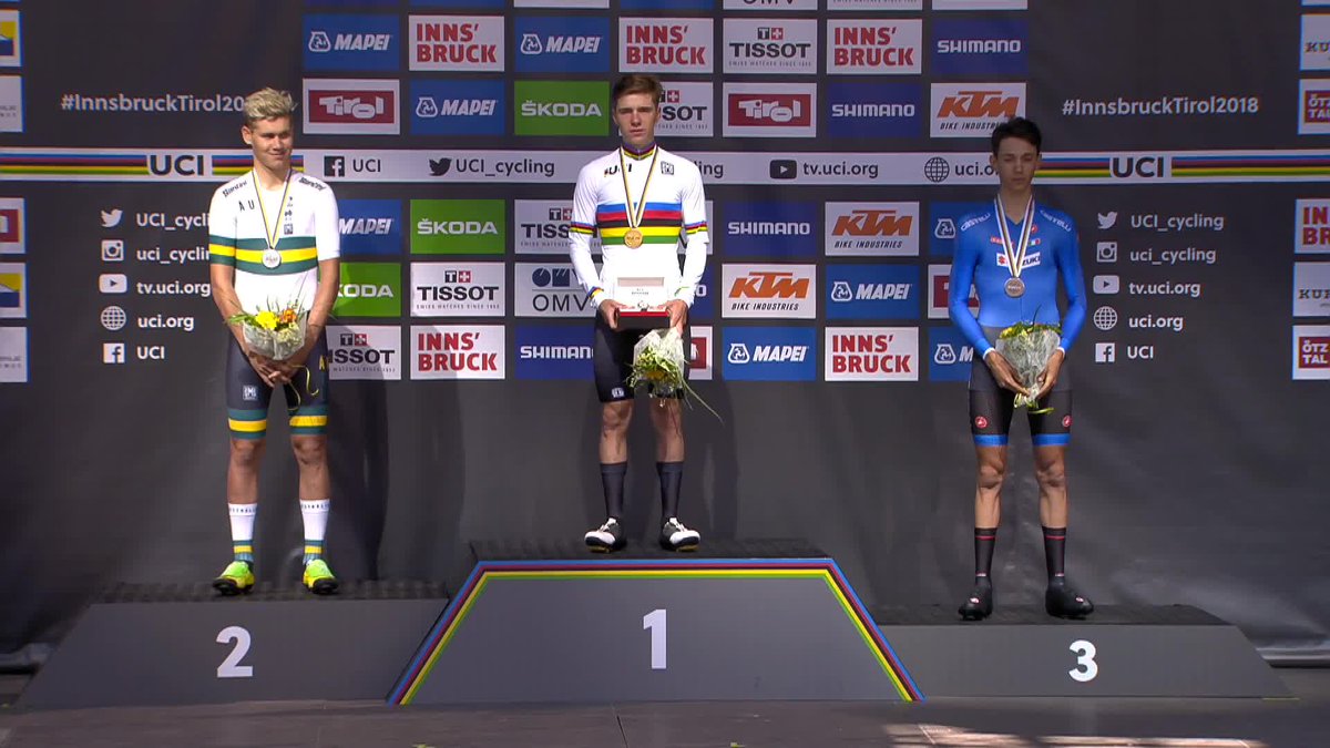 Y así fue. Llegó a meta permitiéndose alzar el puño para celebrar su oro, sus 50 km/h de media y su 1’23» de ventaja sobre Plapp, medalla de plata, y Piccolo, bronce, que quedó a 1’37». Como referencia, el tiempo del belga le habría valido ayer para ser cuarto en la prueba sub-23, a sólo seis segundos del podio y a 44 del oro, contando con que el desarrollo en categoría júnior está limitado a un 52×14. Y tiene 18 años. Y ya está en las redes de Lefevere.