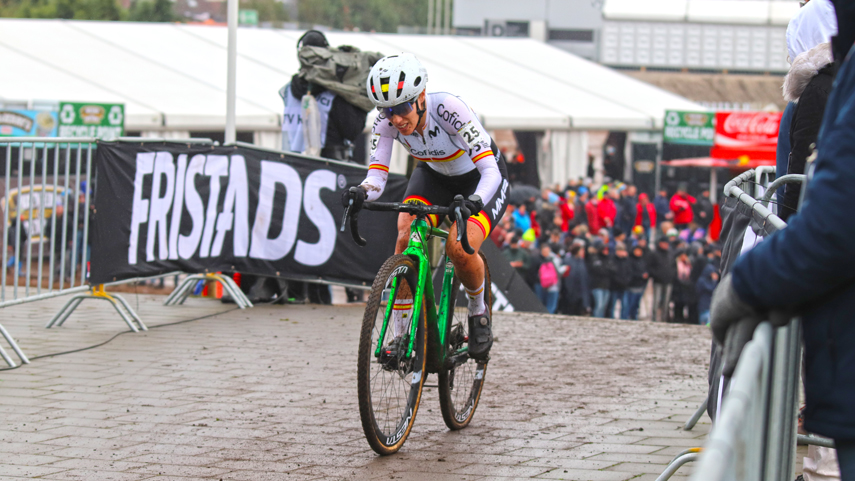 La cinco veces campeona de España élite, Lucía González, ha vuelto a mostrar una vez más una notable solidez para establecerse entre las veinte mejores ciclocrossistas del mundo. Tras una salida no demasiado buena, y unos primeros giros compartiendo ritmo con Sofía Rodríguez, la asturiana pudo poco a poco ir desplegando su buen golpe de pedal para entrar dentro del to-p20 y defender dicha posición hasta el final.