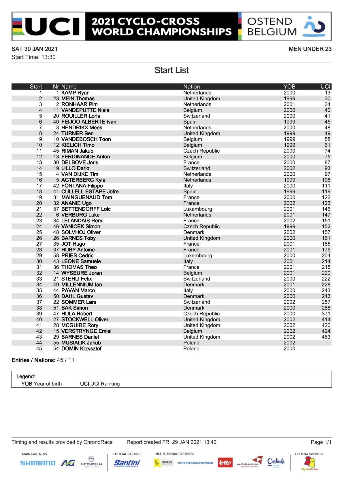 | 13 | ![]() MEIN Thomas | 22 | Tormans Cyclo Cross Team | 1:58 |