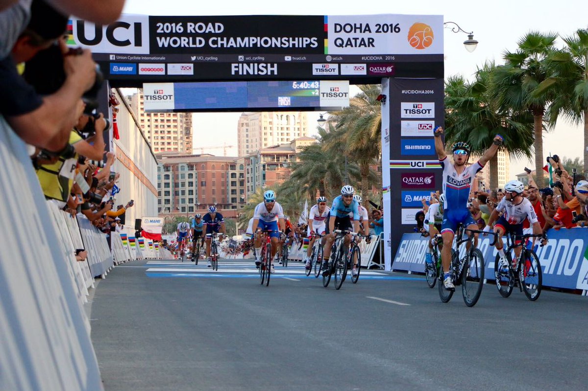 -Peter Sagan: El flamante campeón del mundo aseguraba, dijo nada más cruzar la línea de meta: “no me lo creo. Estoy en shock. Estoy muy contento porque fui el último que pude meterme en el primer grupo. Por un momento pensé que me iba a quedar cortado en el segundo grupo. Tuve que volver desde un poco atrás. Fui afortunado porque Nizzolo no me cerró en ese momento. Si lo llega a hacer, nos caemos porque yo no iba a frenar”. El eslovaco aseguraba que “tengo el mayor grupo de fans aquí y eso es algo que he notado. Me han dado mucha energía. También quiero agradecer a mi familia porque siempre viajan a las carreras más importantes. A mi padre y mi mujer, que han venido a verme. A mi hermano, que ha corrido. Por supuesto, muchas gracias a Kolar por el gran trabajo que ha hecho para mí, apoyándome todo el tiempo”. Fiel a su estilo, el arcoíris se acordaba de “mis amigos del bar de mi pueblo están aquí. No sé si es posible hacer una fiesta aquí. Pero vamos a tener que hacer algo, porque el año pasado, en América, nos cerraron todos los bares y no pudimos celebrarlo”.
