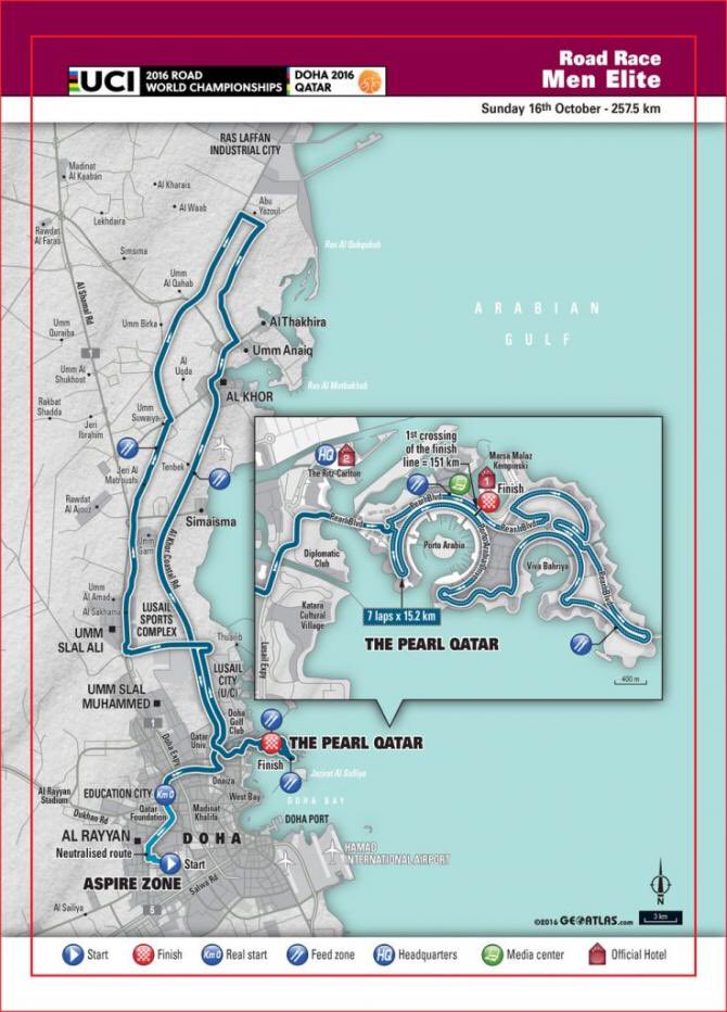 Cuando amaneció ventoso el día, todo el mundo miró el libro de ruta y se fijó en un punto. Una suerte de cruce de caminos en la mitad de la absoluta nada que es el desierto que rodea por todos los lados, salvo el frente marítimo, la ciudad de Doha. El punto elegido, como podría haberlo sido cualquier otro cruce de carreteras, para que el pelotón, conformado a esas alturas por 197 corredores después de que Rigoberto Urán (Colombia) y Vegard Breen (Noruega) no tomaran la salida, girara sobre sus pasos para poner rumbo hacia The Pearl, una de esas islas artificiales que en estas latitudes el hombre está ganándole al mar a base de petrodólares que pagan los planos y proyectos de ingenieros europeos y la esclavitud de la mano de obra, en su mayoría asiática e india.