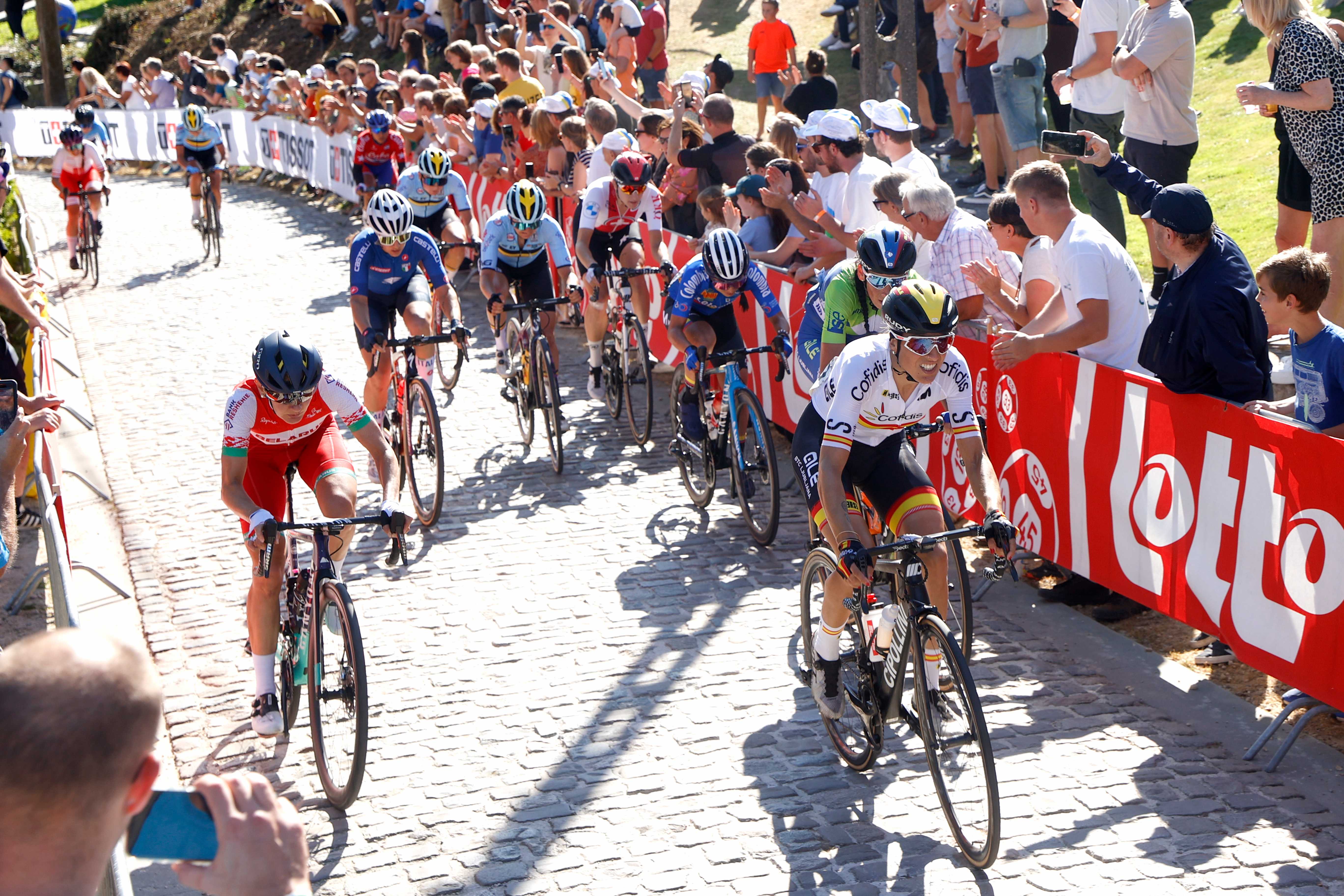 El arcoíris se ha resuelto en el repecho final, Sint Antoniusberg, donde Hagenes ha destrozado con una arrancada feroz a todos sus rivales para quedar en solitario al frente. A unos 10 segundos le perseguían Gregoire y el italiano Oioli, que ha terminado siendo absorbido por el pelotón y perdiendo sus opciones de medalla.