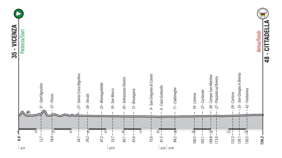 Los recorridos se compondrán en tres cuartas partes de tramos de grava blanca típicos de Italia -similares a los de las Strade Bianche, las conocidas pruebas del UCI WorldTour y del UCI Women WorldTour- y de tramos adoquinados. La cuarta parte restante estará formada por carreteras de asfalto. En los primeros 20 kilómetros hay dos subidas que suman un total de 3 km, una sobre grava y otra sobre asfalto, con pendientes de alrededor del 10%. El recorrido pasará por muchos lugares culturales importantes de la región, incluida la ciudad medieval amurallada de Cittadella, situada a 25 km al noreste de Vicenza y que acogerá la meta.