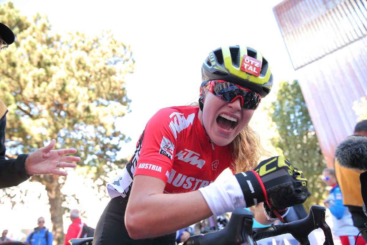 Después de que Remco Evenepoel centrara toda la atención como gran revelación de la cita tras su triunfo en la prueba cronometrada júnior masculina, Laura Stigger, campeona del mundo de BTT en este 2018, sorprendió a todos al hacerse con el arcoíris de fondo en carretera en su segunda prueba en ruta, tal y como ella misma confirmaba tras la finalización del evento. Un triunfo que ha llegado como una sorpresa, pero desde luego no como algo inmerecido ya que la austriaca supo estar siempre atenta a los cortes y, sobre todo, dosificar bien sus fuerzas para mantenerse con todas las opciones en el sprint final.